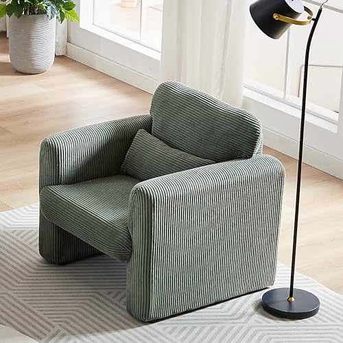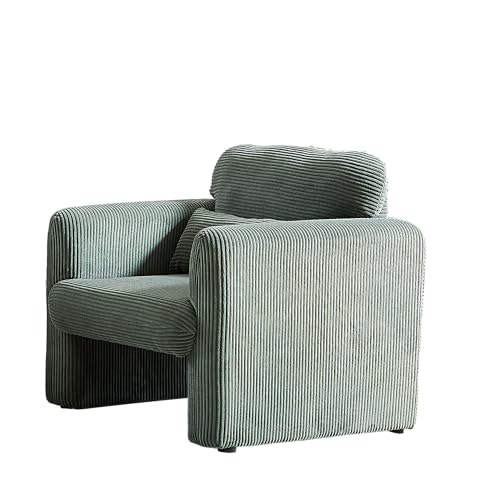 33" Corduroy Fabric Single Sofa,Modern Upholstered Sofa Chiar with 1 Pillows,Elegance Armrest Reading Chair for Apartment,Office,Living Room,Bedroom,Grey(Army Green)