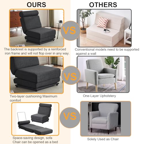 【Easy Conversion & Storage】The sofa chair easily transforms into a single bed, toffee chair, or lounger. Its foldable design makes it easy to store, saving space when not in use. The reinforced back frame keeps the sofa stable in any folded position.
