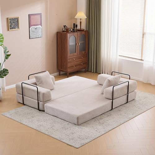 【4-in-1 Convertible & Modular Design】This 4-in-1 convertible sleeper sofa functions as a modular floor couch, fold out daybed, or sofa cama queen. Rearrange the folding floor sofa bed to fit your space, perfect for apartments, guest rooms, or small bedrooms.