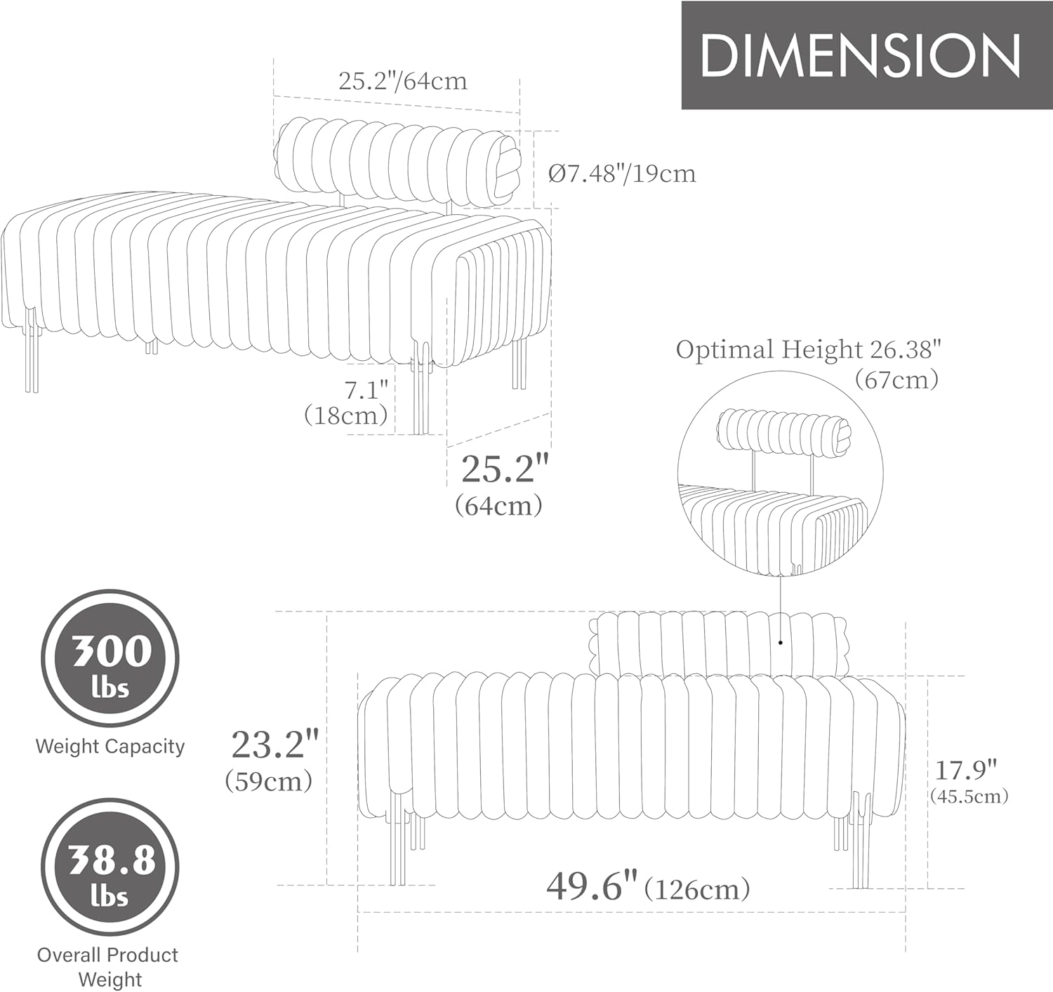 【Versatile】This bench can be used as a footrest sofa in the living room or office, placed at the foot of the bed as a bedroom bench, decorative window seat, or as a shoe bench in the hallway, entryway, or closet