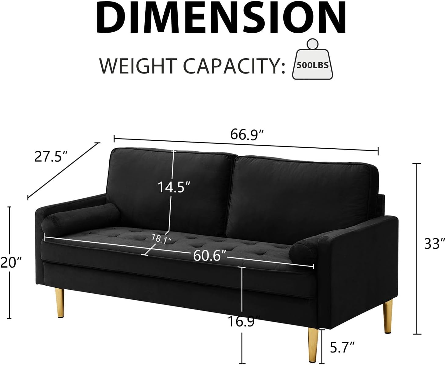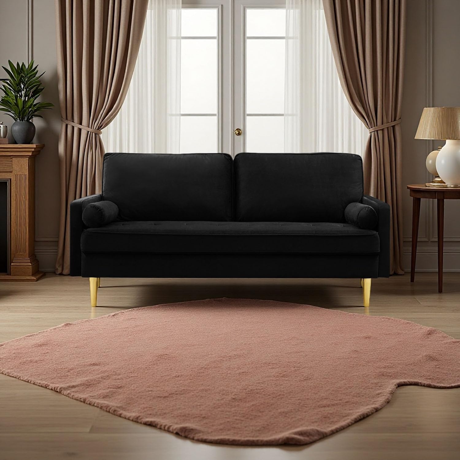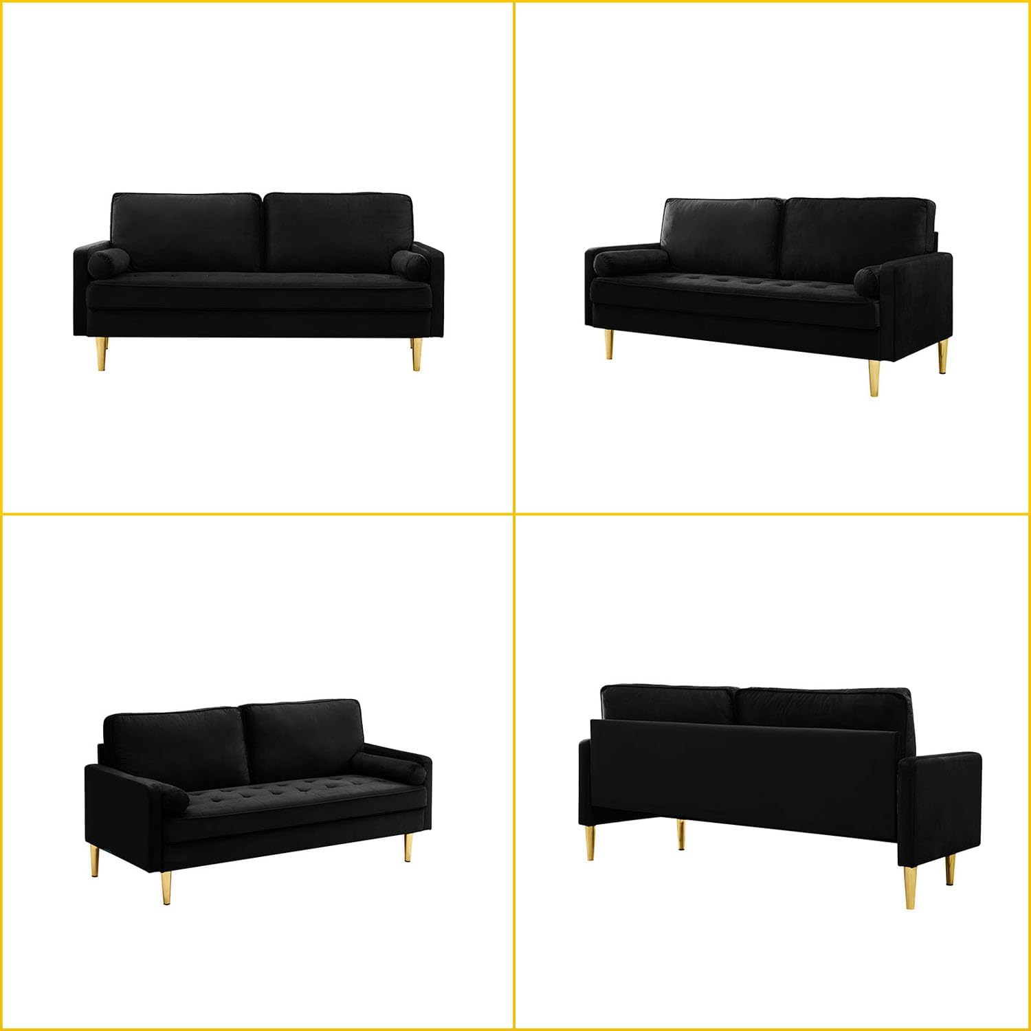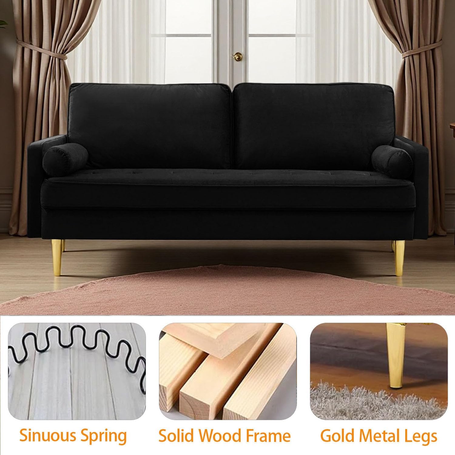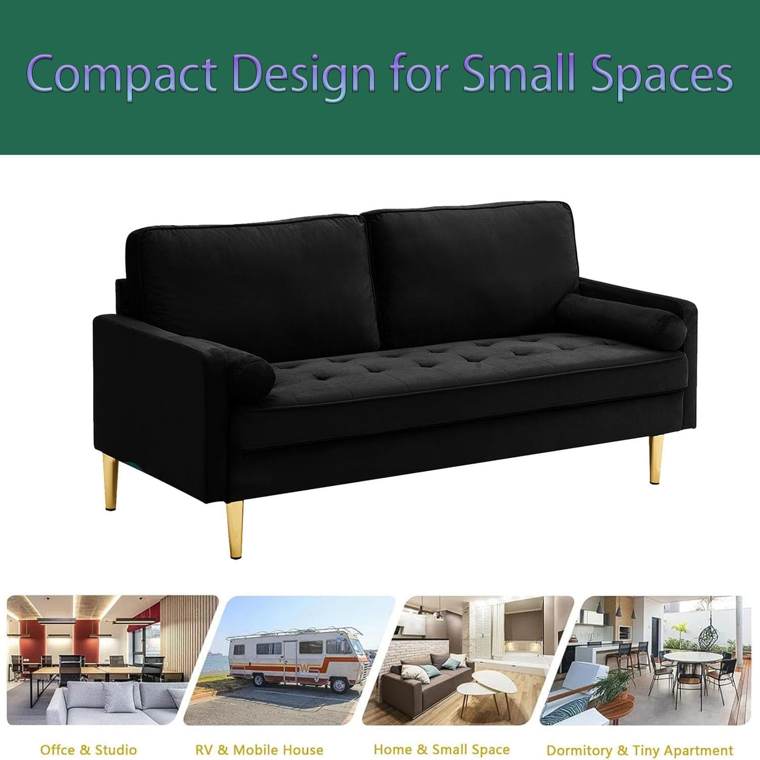 Luxurious Velvet Design That Elevates Your Space:Indulge in the opulence of our modern velvet loveseat sofa, where high-end aesthetics meet functionality. Enhanced with elegant tufting on the armrests and premium tapered metal legs, this sofa is a statement piece that blends mid-century glamour with contemporary minimalism