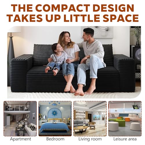 Comment on "63" Cloud Loveseat Sofa - Boneless Deep Seat 2-Seater, No Assembly Foam Floor Couch, Plush Corduroy Fabric, Modern Living Room Sofa for Small Space Apartment, Bedroom, Office (Black, 63")(Black,63")"