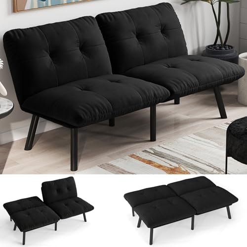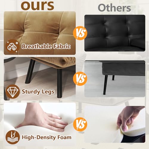 Sturdy & Comfortable: Built with a durable metal frame, the futon couch bed supports up to 800 LBS, providing long-lasting use; The cushions are filled with foam for a balance of comfort and support, while the velvet upholstery adds luxury