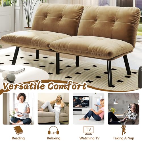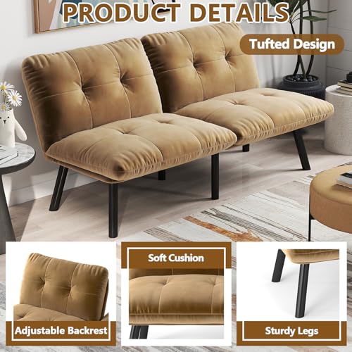 Adjustable Backrest: The backrest of the velvet futon couch can be tilted and adjusted to 5 different angles, it provides excellent lower, middle, and upper back support