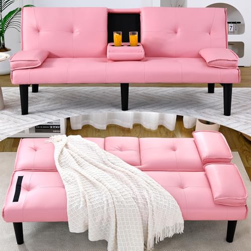 Sturdy Construction for Daily Use:Built with a solid wood frame and chrome supports, this futon convertible sofas supports up to 500lbs. High-resilience foam cushions maintain their shape over time, ensuring lasting comfort whether you're sitting, lounging, or sleeping. The elegant pink design complements modern, industrial, or minimalist decor