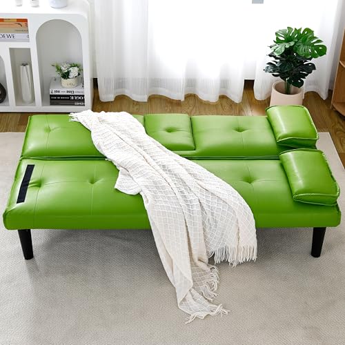 CONVERTIBLE FUTON SOFA BED;This 67" Modern couch bed effortlessly transforms from a cozy small sofa for living room to a comfortable bed, making it perfect for accommodating guests or for relaxing evenings. The built - in cup holders add convenience, allowing you to enjoy your favorite drinks without worry。 Whether placed in the living room of an apartment as a daily leisure corner, placed in a dormitory to add practical furniture to a limited space, or used in a small office as a temporary rest area, it can be perfectly adapted