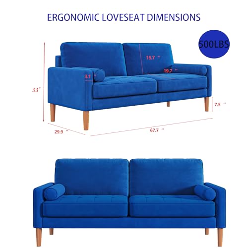 67" W Modern Velvet Loveseat Sofa, Mid Century Modern Decor Love Seat Couches for Living Room, Button Tufted Upholstered Small Couch for Bedroom, Easy to Install Love Seats Furniture (Blue)(Blue)