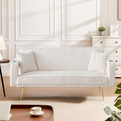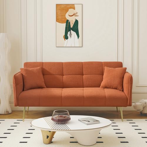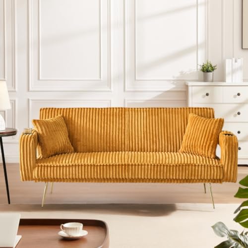 • ELEGANT & CUTE:Our modern sofa bed blends cute elements,Its playful and generous style,neat and exquisite stitching on the backrest,tight square armrests,spacious seat,plush cushions and gold metal legs bring a warm and elegant feeling to your living room,small apartment,dormitory and bedroom