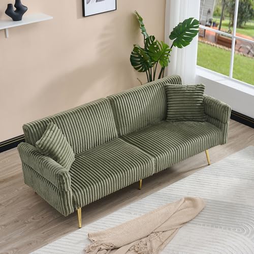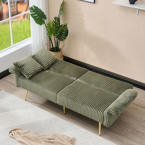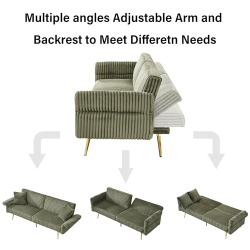 73" Convertible Futon Sofa Bed,Comfy Teddy Fabric Sleeper Couch with 3 Reclining Backrests,Golden Chrome Legs,Modern Cloud Sofa Loveseat for Small Living Room Office (White-Corduroy)(Green-corduroy)