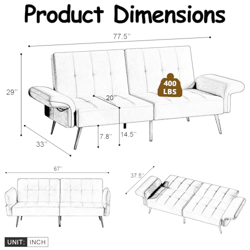 • 【SPACE-SAVING CONVERTIBLE DESIGN】This sofa bed seamlessly transitions between a stylish couch and a comfy bed, making it perfect for small spaces like apartments, dorms, or guest rooms; The compact size and multifunctionality maximize your space without compromising comfort