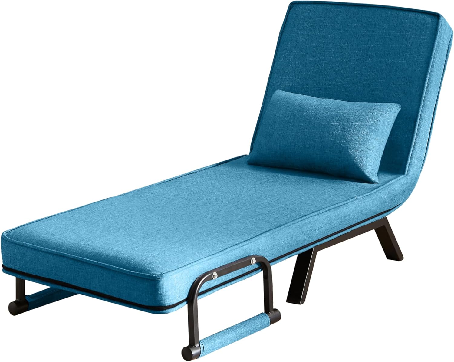 A Foldable Chair Bed with 5-Level Adjustable backrest and Pillow, a Comfortable Single futon Sofa Bed, Suitable for Apartments and Offices. (Blue + Linen + 1 Seat)(Blue + Linen + 1 Seat)