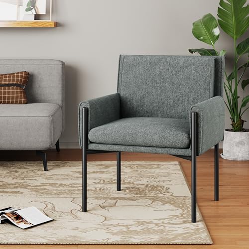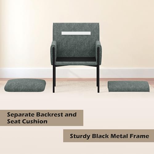【Reinforced Metal Frame Chair】The heavy-duty metal frame of the armchair is durable enough for frequent use which also making the chair could hold up to 350lbs weight. There are non-slip foot pads protecting your floor from scratches and avoid noise when moving the chair