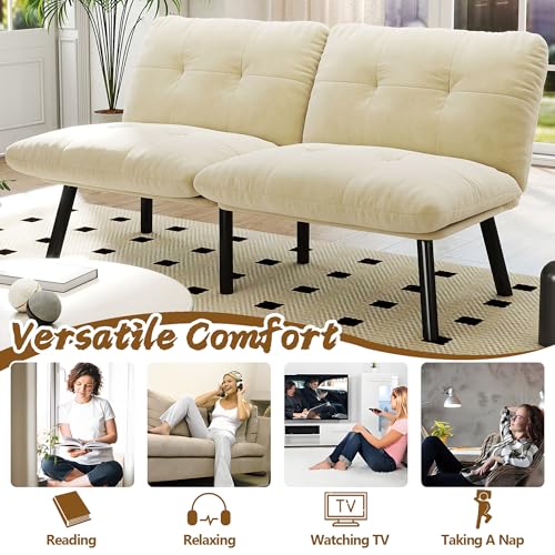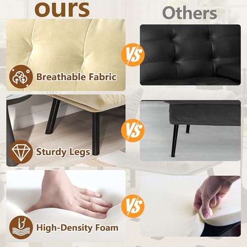 Luxurious Comfort: The convertible futon sofas features plush high-density foam; Soft velvet upholstery feels premium while providing ideal support