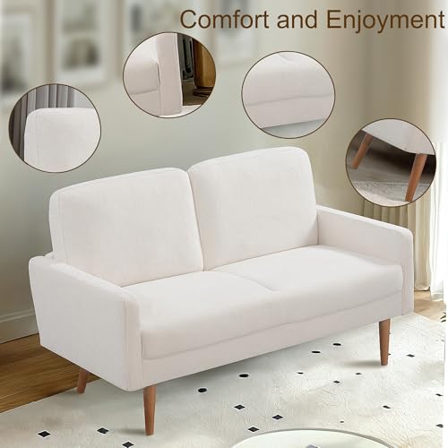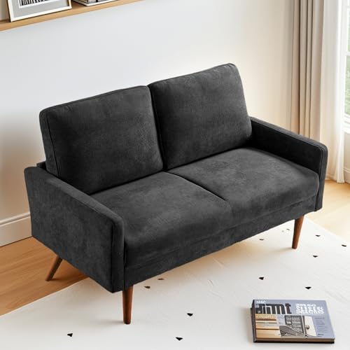 Anwick Modern Boucle Loveseat Sofa,2-Seater Fabric Love Seat w/ 2 Pillows,Stylish Golden Legs,52" Mini Sofa Couches for Small Home Living Room Bedroom Office (Black)(Beige)