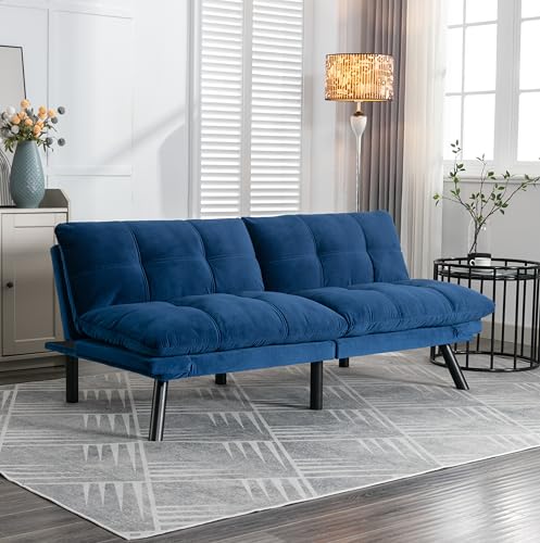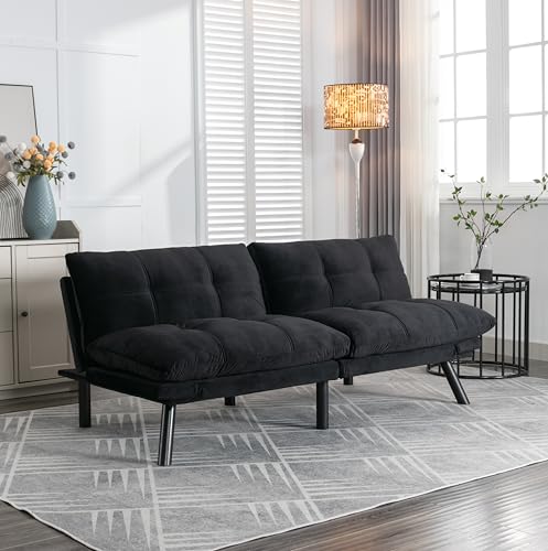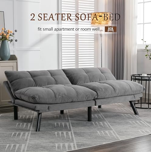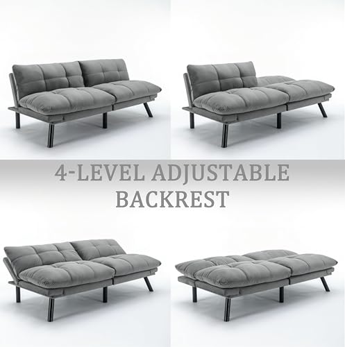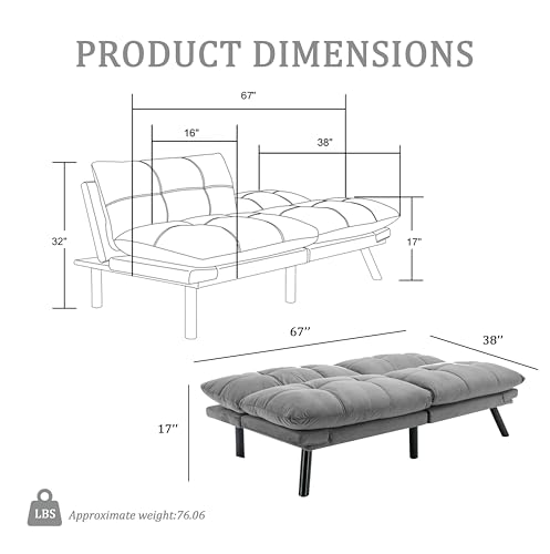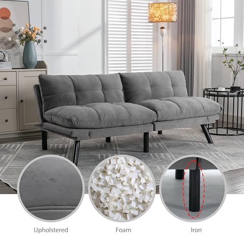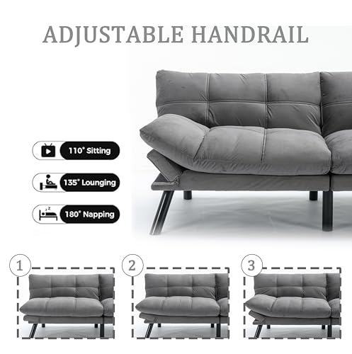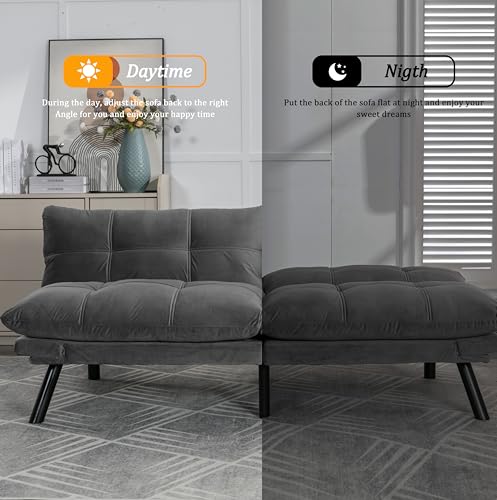 Anwick Modern Velvet Convertible Folding Futon Couch Sofa Bed, 71″Fabric Futon Couch with Adjustable Backrest, Folding Futon Sleeper Recliner for Living Room Furniture (Black)(Light Grey)