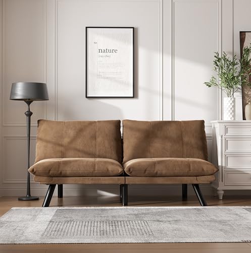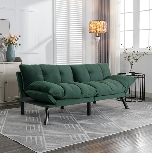 • HIGH QUALITY MATERIAL- Ensuring you the ultimate comfort and secure experience, our futon sleeper couch’s seat cushion is crafted from high resilient sponge that does not sink in easily or lose shape upon sitting down. It offers you the maximum soft and comfy experience you would need after a long day