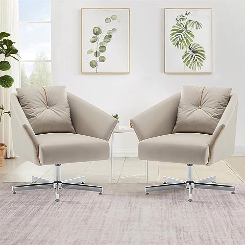Awonde Swivel Chairs for Living Room Accent Chair Faux Leather Armchair Bedroom Reading Chair Beige(1,Beige)