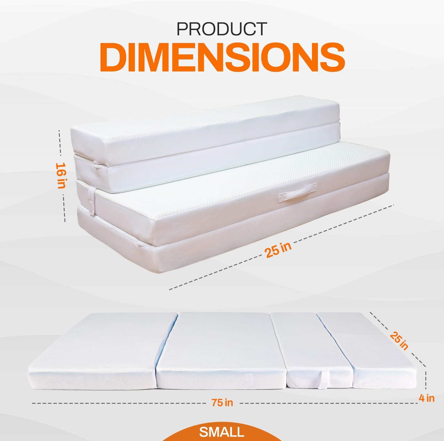 Comment on "Cheer Collection Memory Foam Folding Mattress, Four Fold Convertible Sofa Bed Couch, 4" Thick Gel Infused Foam Folding Bed Sofa for Guests, Small Size (75" x 25")(4" Thick Mattress,Small - 75" x 25")"