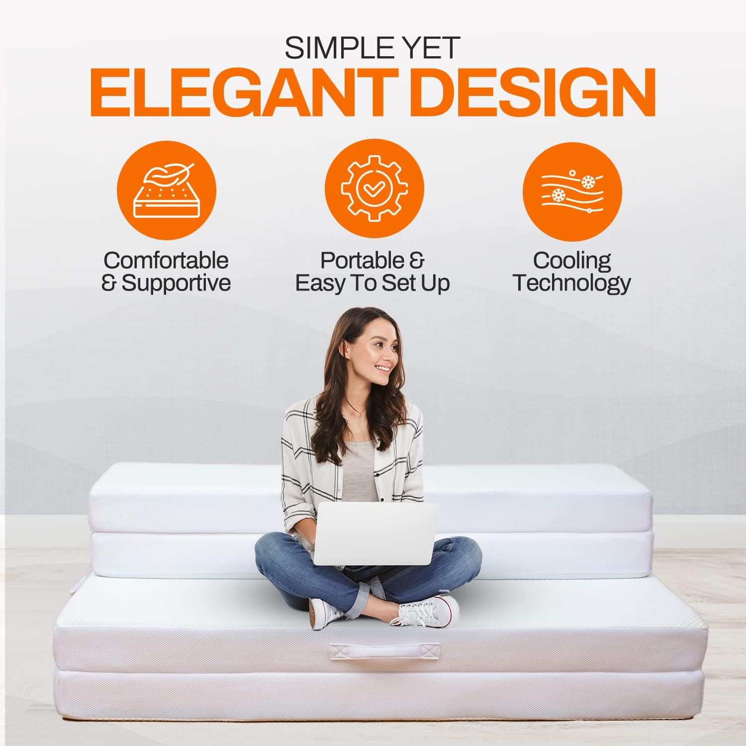 Portable Four Fold Design: Thanks to the folding design, you can easily take this portable bed for adults with you on the go. Our folding mattress and sofa bed is perfect for camp trips and can be neatly stored away when not in use without taking up much space