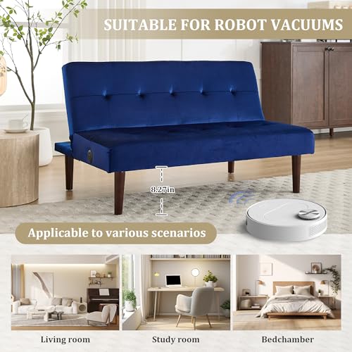 Coffee Modern Velvet Convertible Folding Futon Couch Sofa Bed, 45" Small Mini Loveseat Sofa Beds With Adjustable Backrest Memory Love Seat Double for Compact Living Dorm Office Bedroom (Coffee)(Blue)