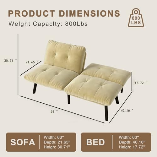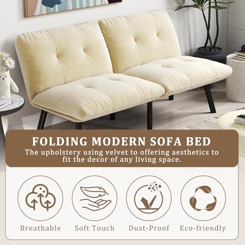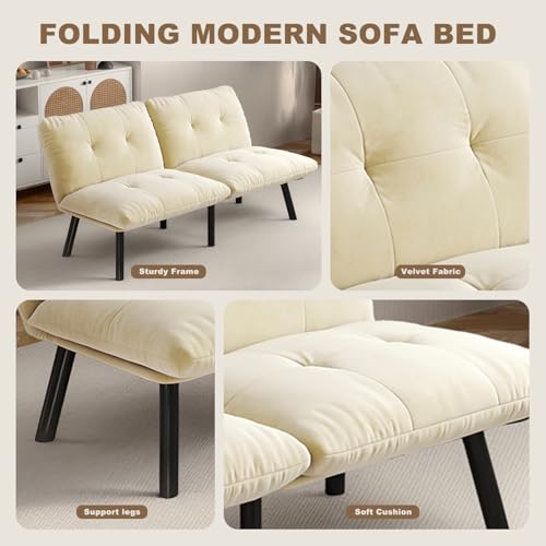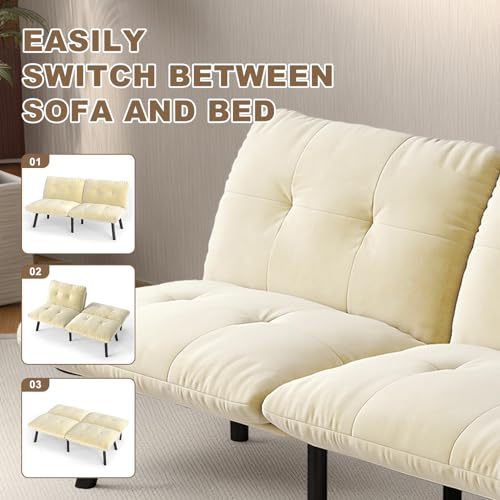 Convertible Futon Sofa Bed, 67″Fabric Futons Couch with Adjustable Backrest, Folding Sleeper Recliner for Living Room Furniture (Black)(Cream)
