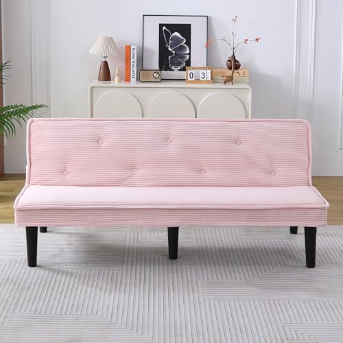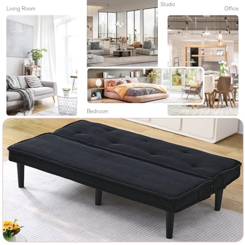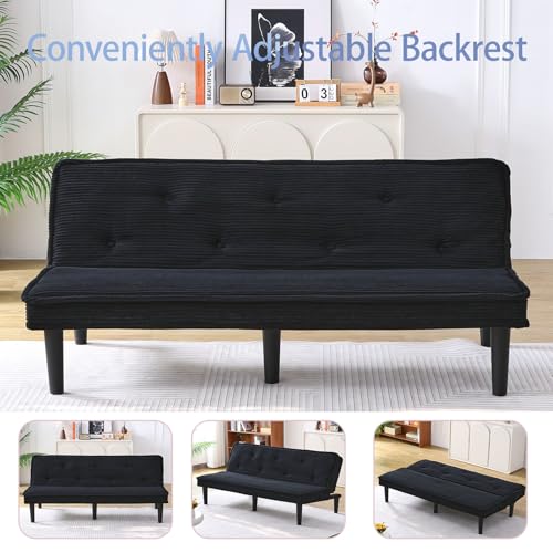 Convertible Futon Sofa Bed,Corduroy Folding Loveseat Couch with Adjustable Backrest,Double Sleeper Sofa Couches for Small Spaces Living Rooms Apartment Office (Black-1)(Black-1)
