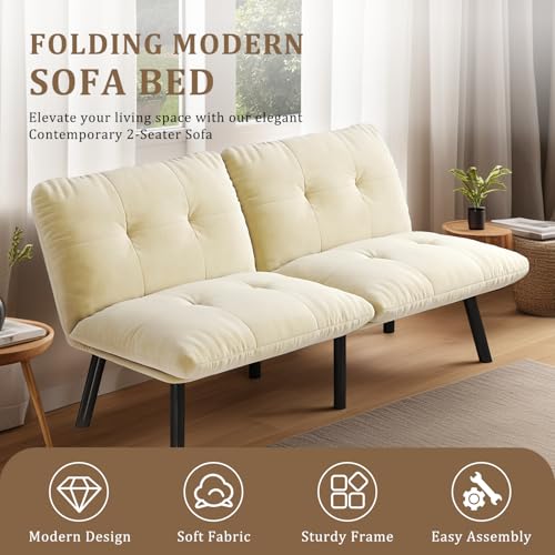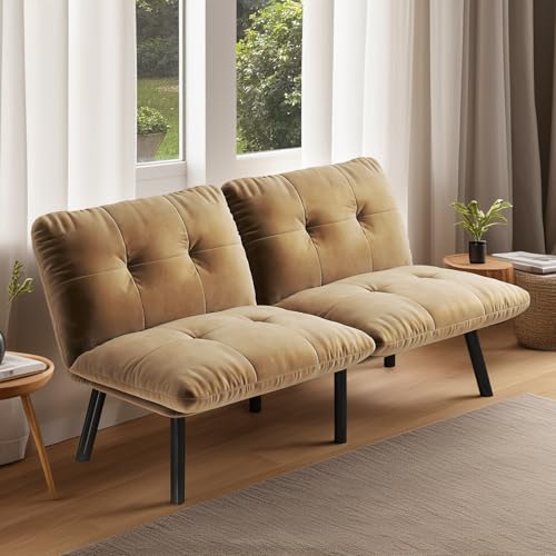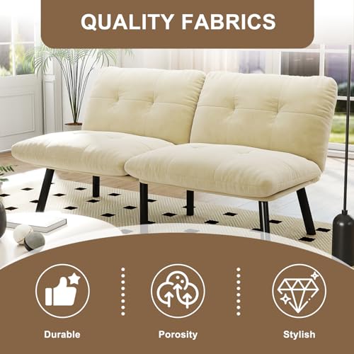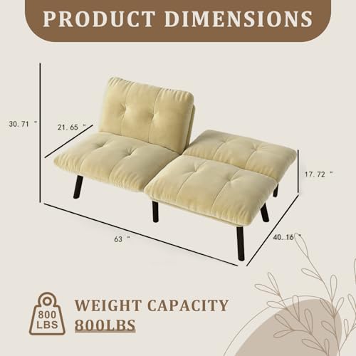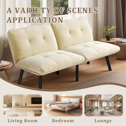 Convertible Futon Sofas,Sofa Bed Velvet Futon Couch with Adjustable Backrest, Modern Loveseat Couch for Living Room and Bedroom (Brown)(Cream)