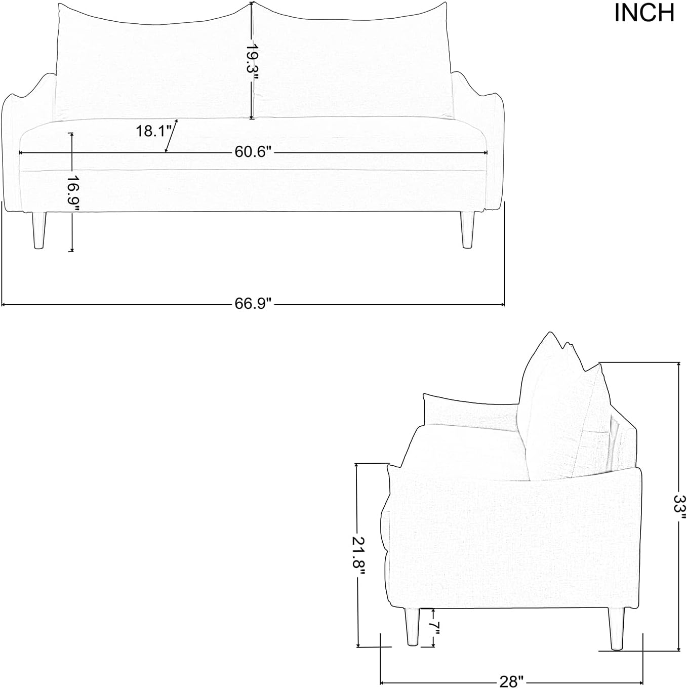 Perfect Fit for Any Space - Measuring 66.9 inches, this 2-seater couch is thoughtfully designed to fit comfortably in small to medium-sized rooms, apartments, or offices. Its compact size maximizes space without compromising on style or functionality.