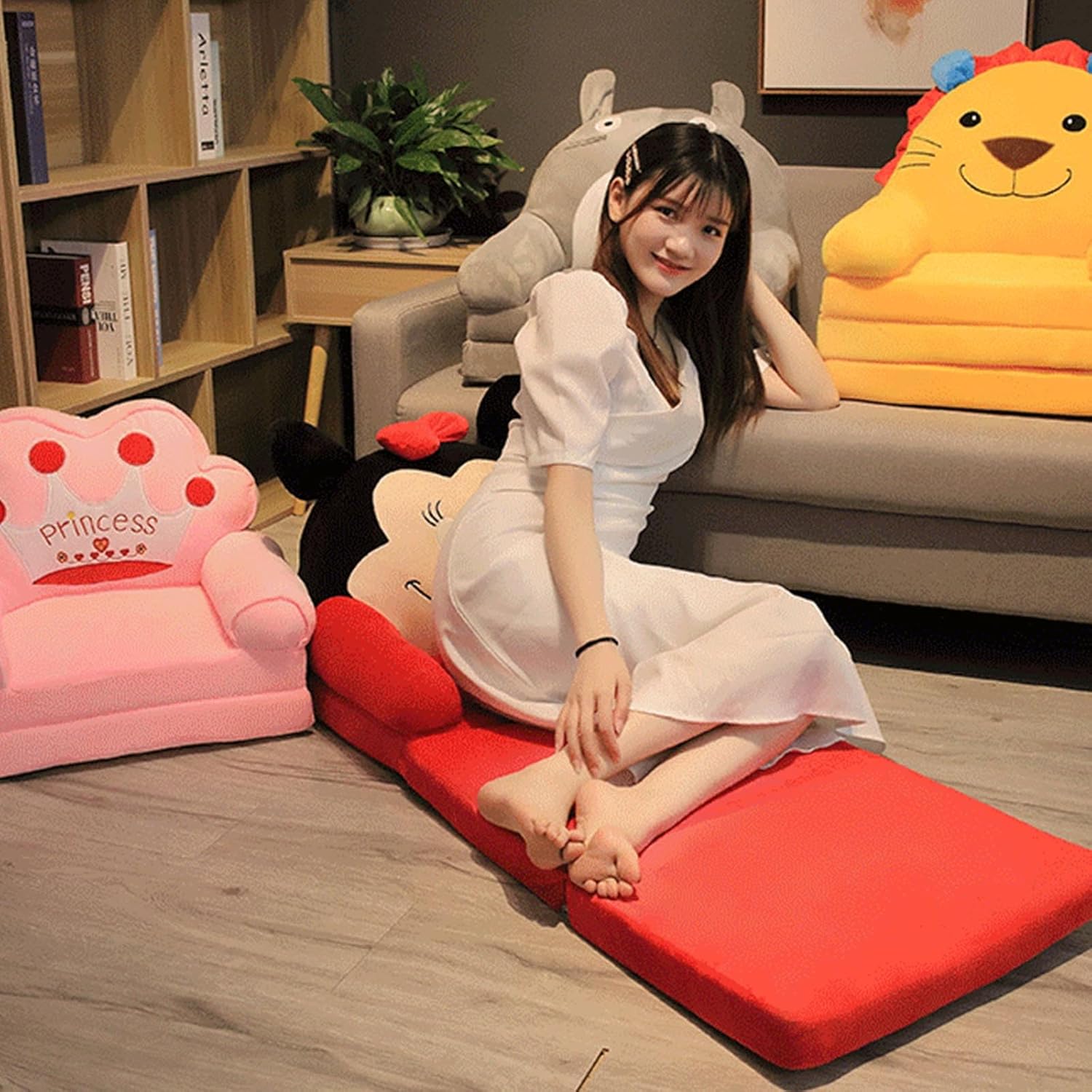 Fold small Plush Lazy Sofa, 2 in 1 Fold Backrest Cartoon Armchair, Flip Open Sofa Bed for Living Room Bedroom