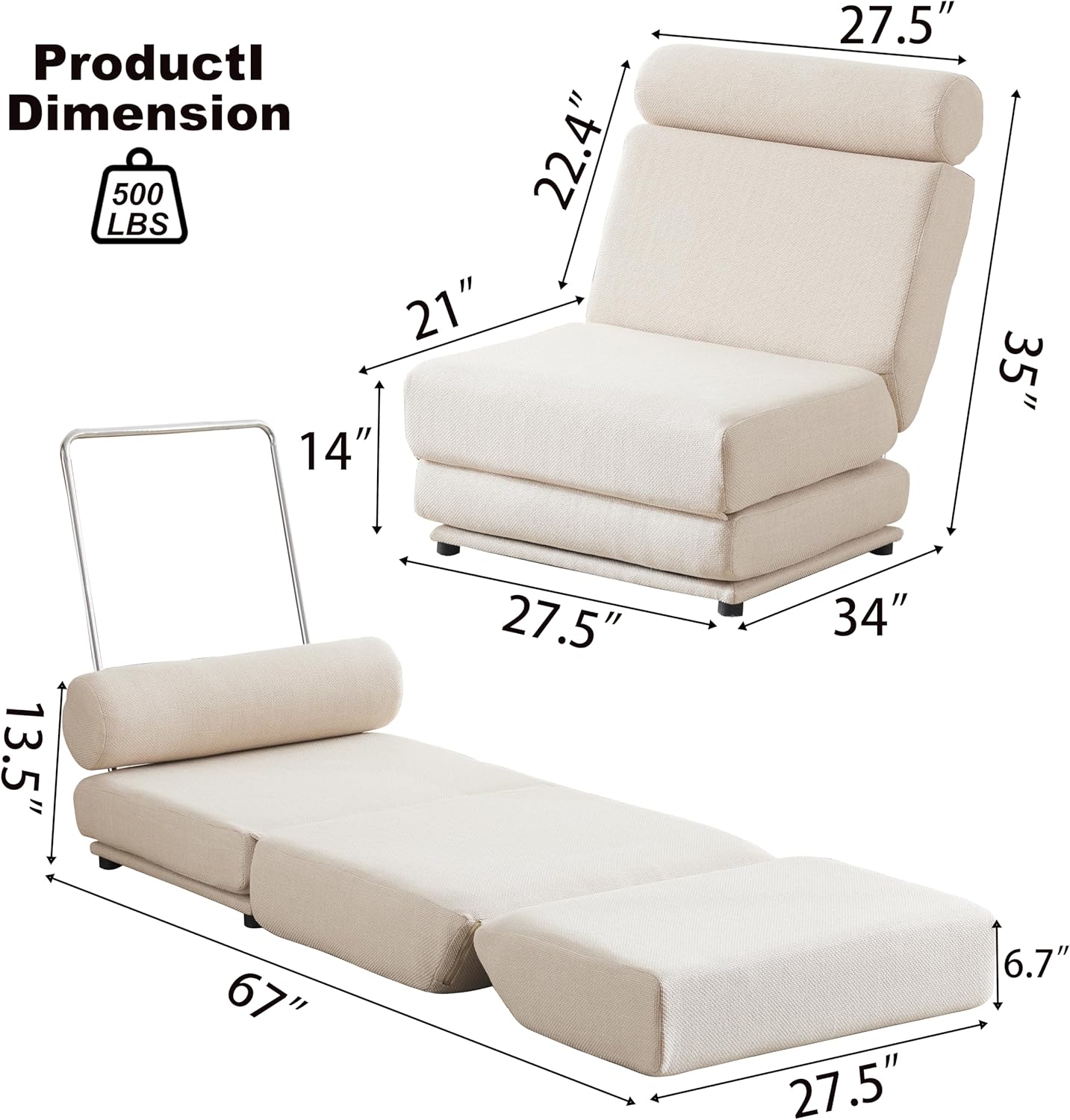 Ultra-Versatile & Space-Saving Solution: Designed for modern living, this lightweight yet sturdy convertible sleeper chair effortlessly transforms to fit your needs—use it as a compact chair, cozy lounger, or spacious single bed. The included removable pillow adds extra comfort, whether you're sitting upright or stretching out. Perfect for small apartments, dorm rooms, or as extra guest seating