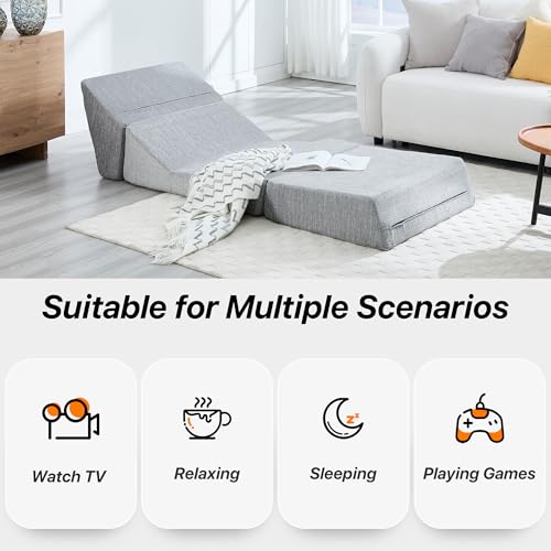 【Multifunction】This sofa is a three-in-one multi-functional sofa, you can change a variety of shapes to match your different leisure needs, can be a sofa for reading, can also be a mattress for rest and sleep.You can save space to a great extent and don't have to worry about not having a place to sleep when friends or family visit, it is a suitable choice for your living room sofa