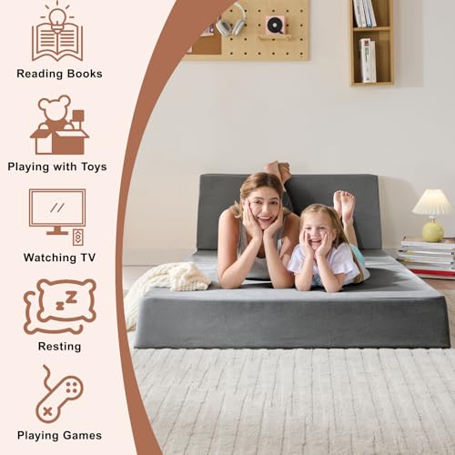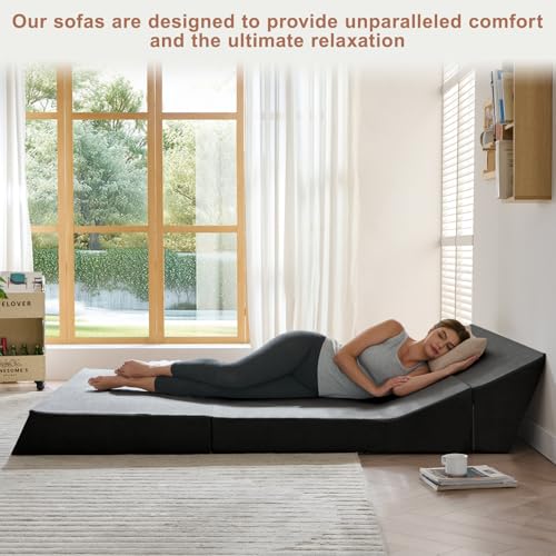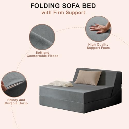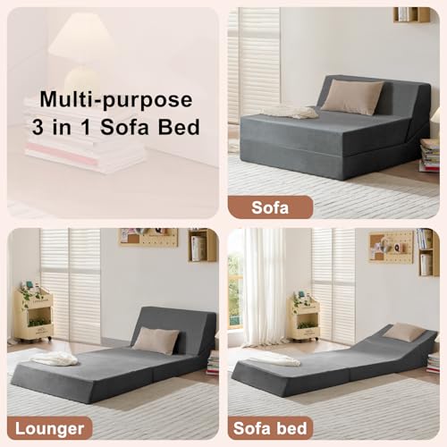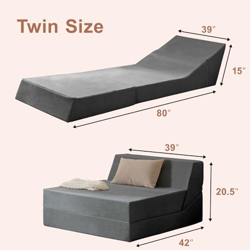 Folding Sofa Bed, Sleeper Chair and Futon Couch, Convertible Bed, Floor Sofa for Living Room/Guest Room/Dorm/Home Office, Single Size, Light Gray(Dark Gray,twin)