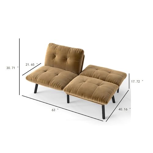 Futon Sofa Bed Velvet Futon Couch with Adjustable Backrest, 63" Convertible Folding Sleeper Sofa Bed, Modern Loveseat for Small Space Living Room Bedroom Apartment (Black)(Brown)