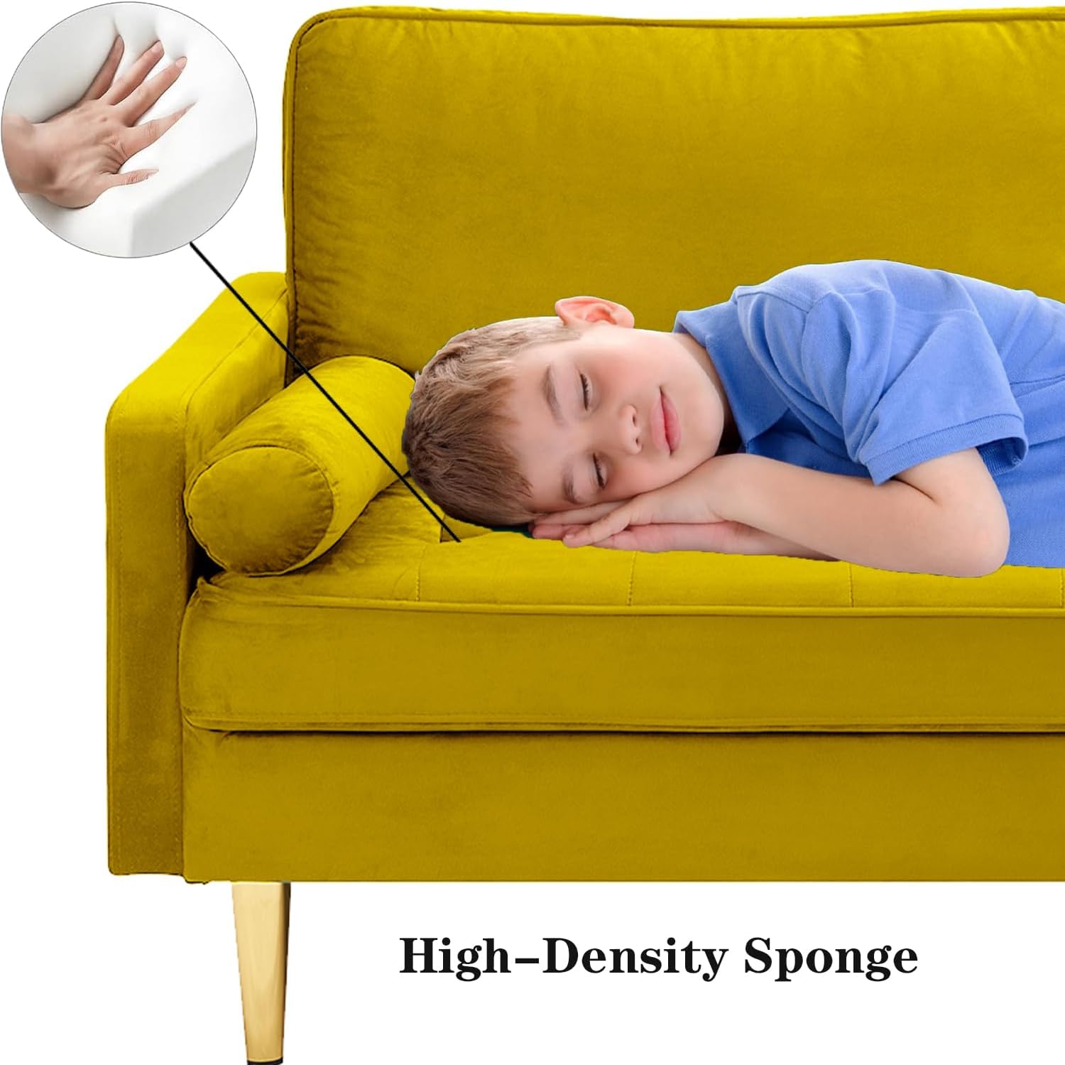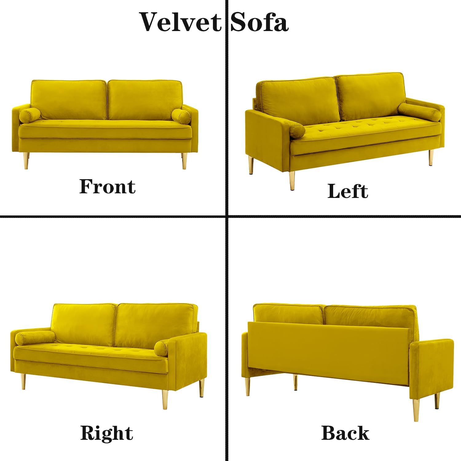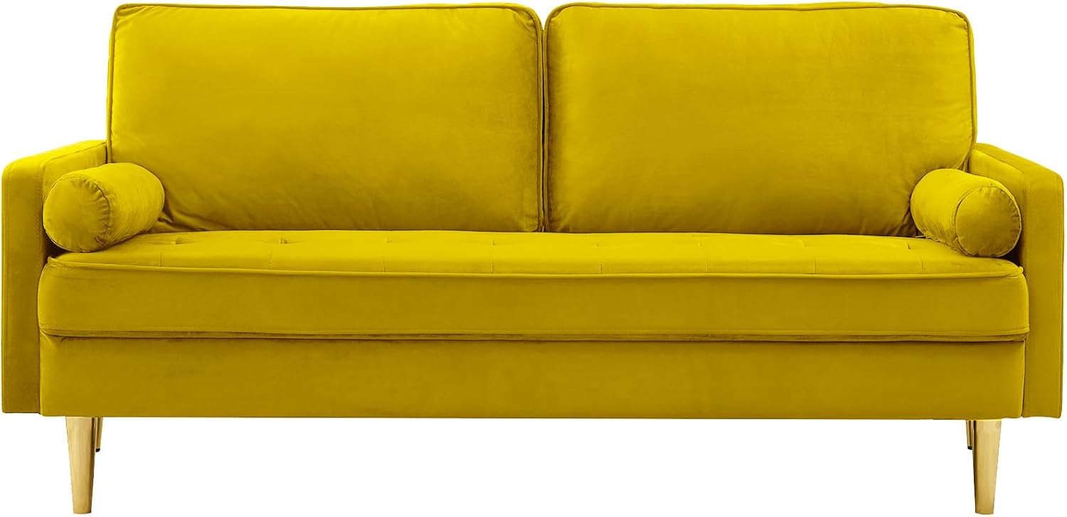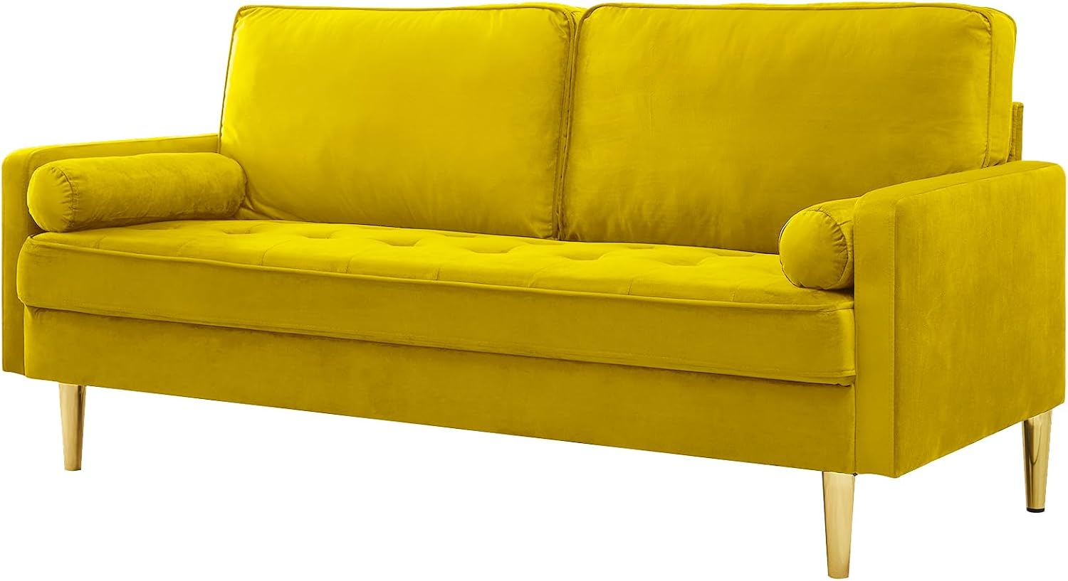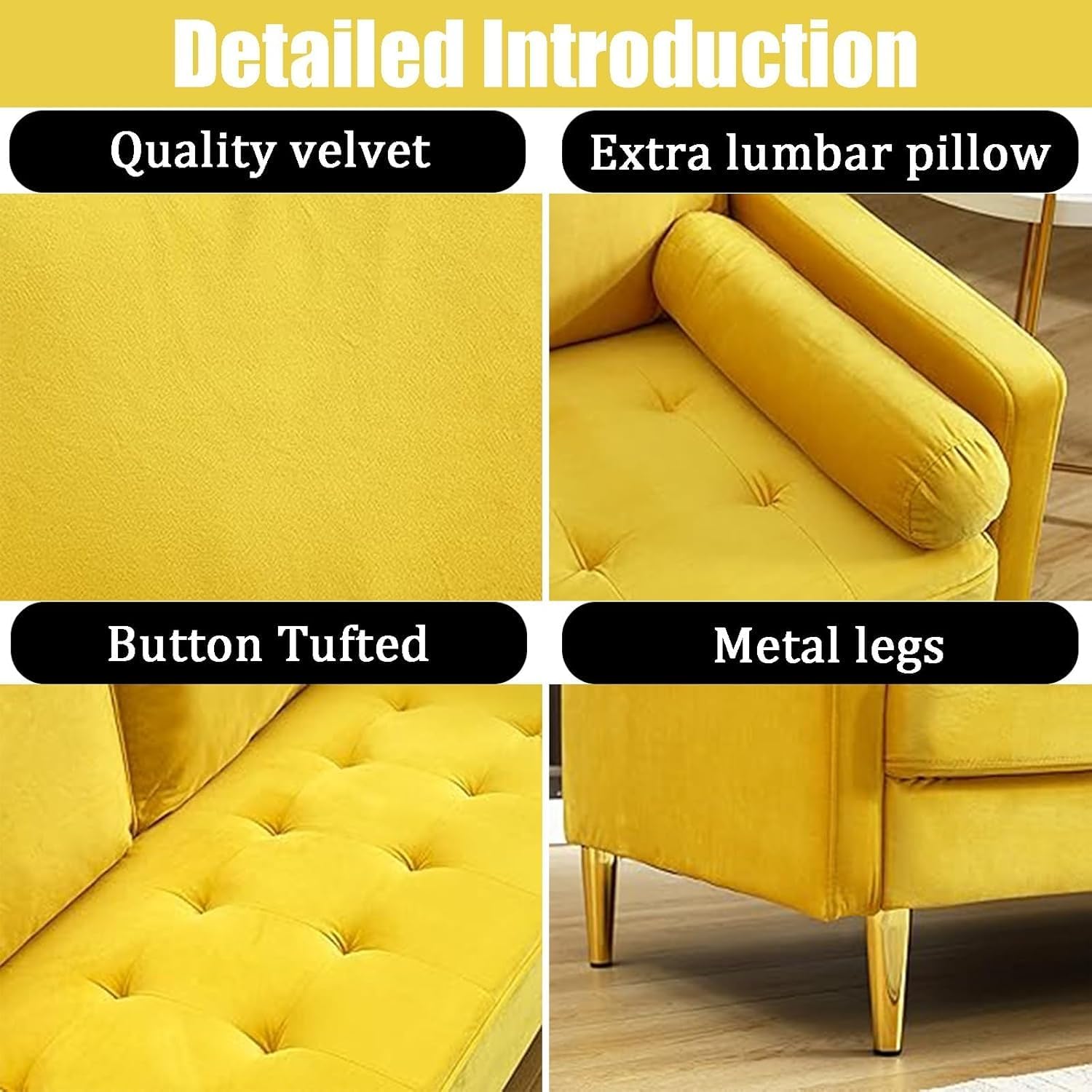 Comment on "Grey Loveseat Sofa, 67" Velvet Upholstered Mini Small Couch Sofa with 2 Pillows, Bedroom Compact Couch with Gold Metal Legs for Living Room, Office, Apartment (Grey)(Yellow)"