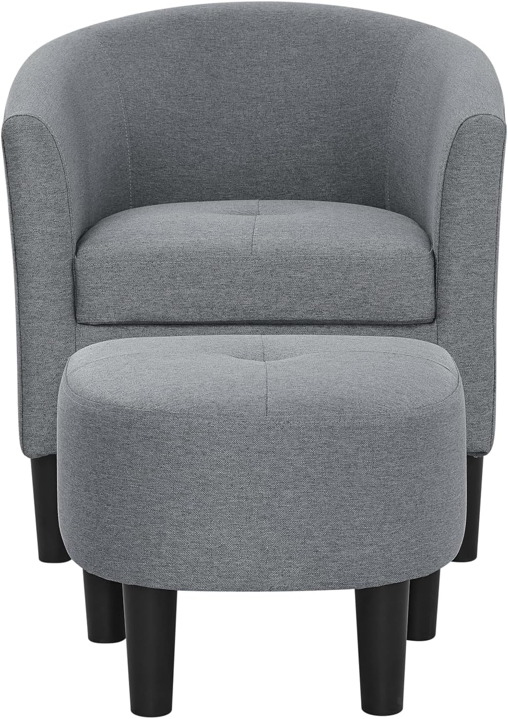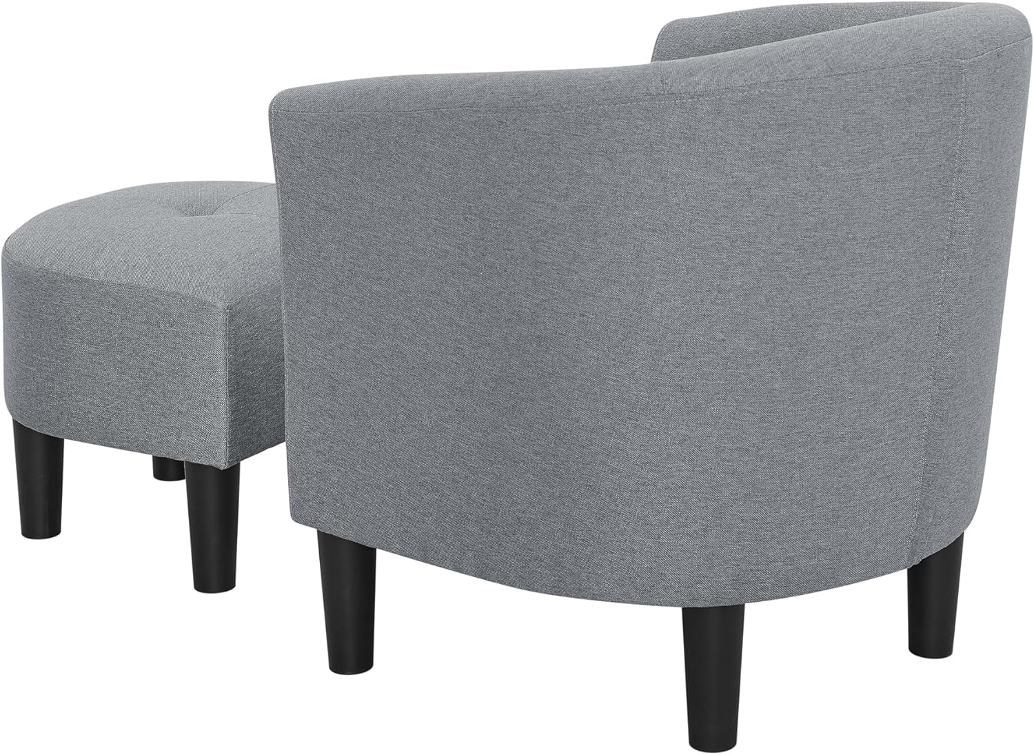 INMOZATA Bedroom Chair and Ottoman - Modern Accent Barrel Chair with Footrest - Comfy Polyester Reading Armchair and Footstool for Living Room/Waiting Room/Guestroom(Grey)