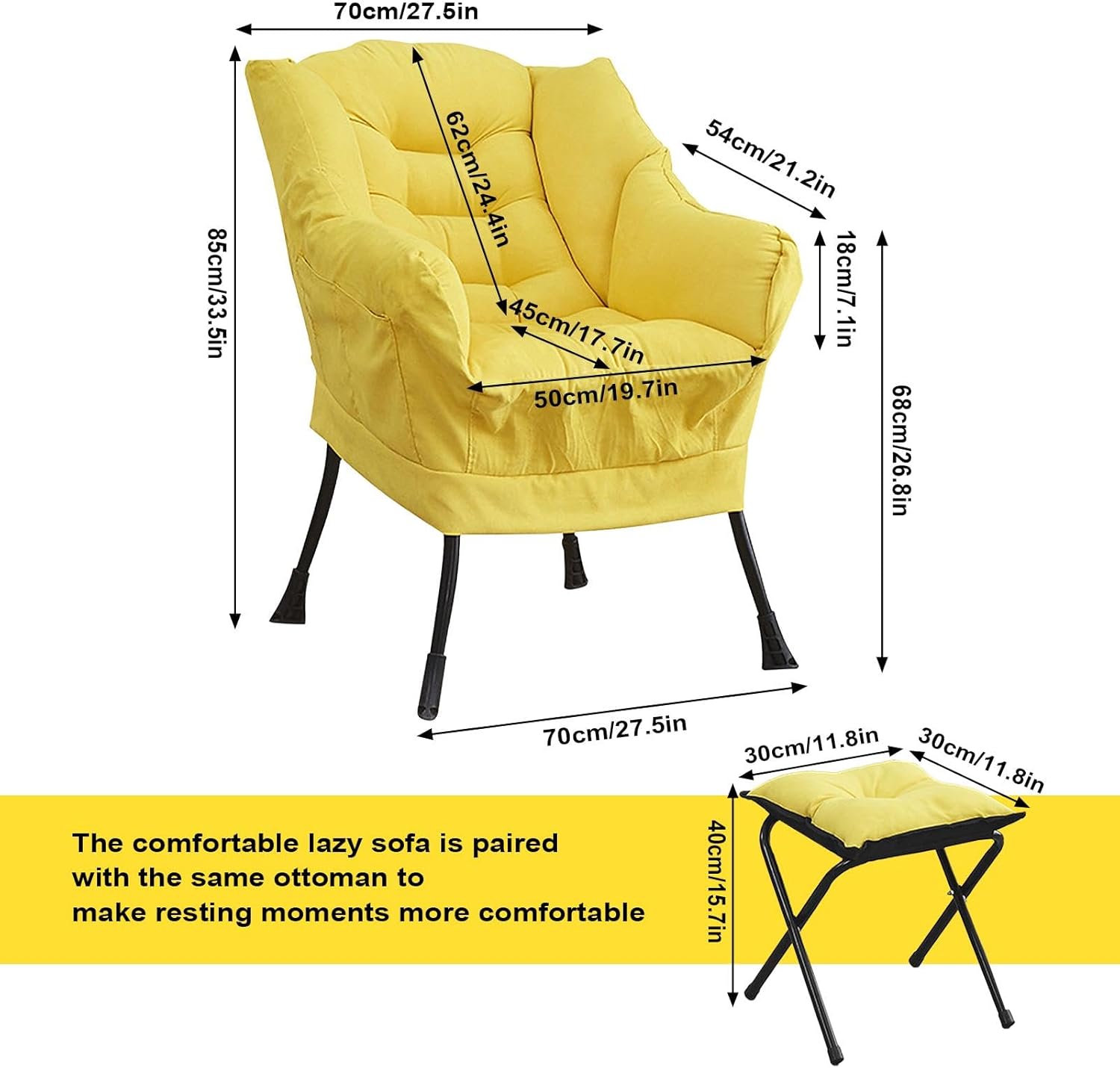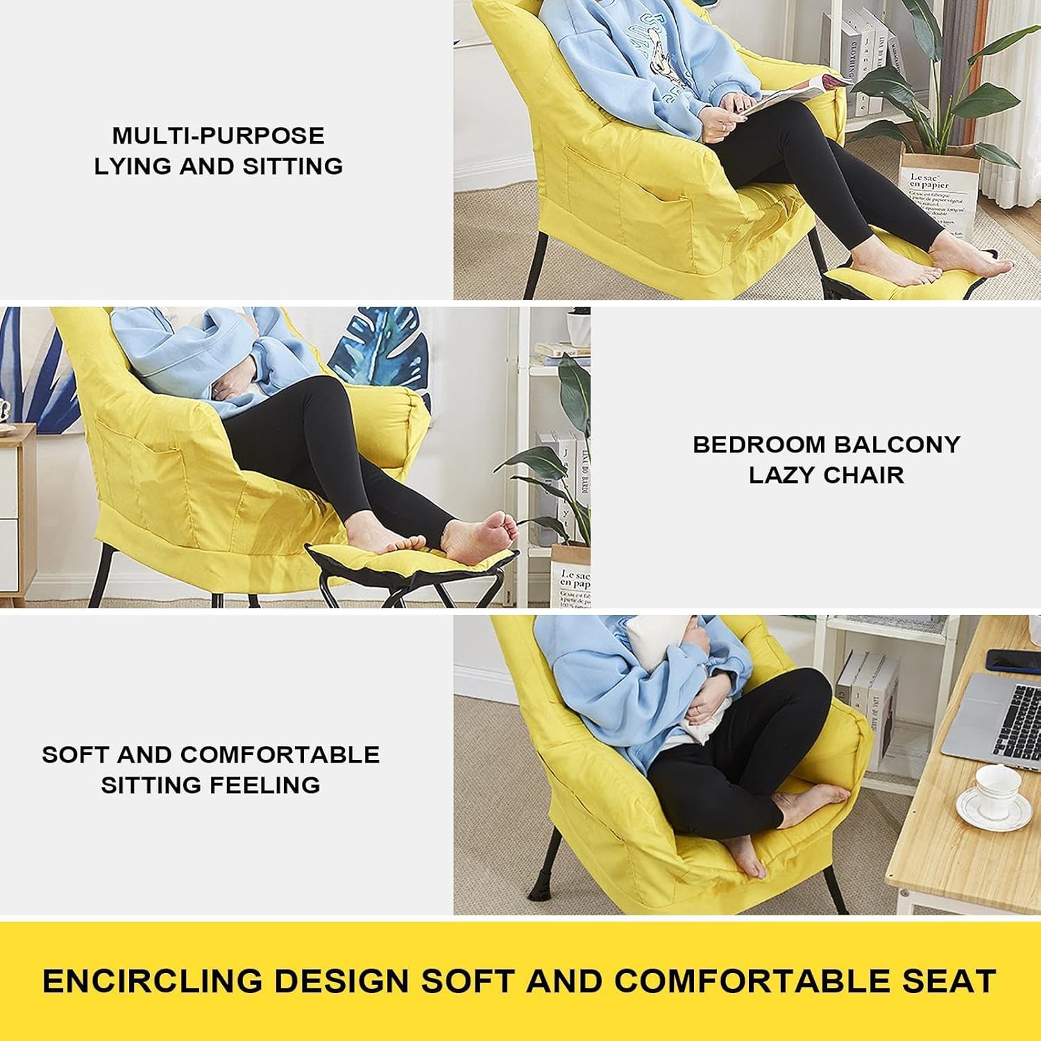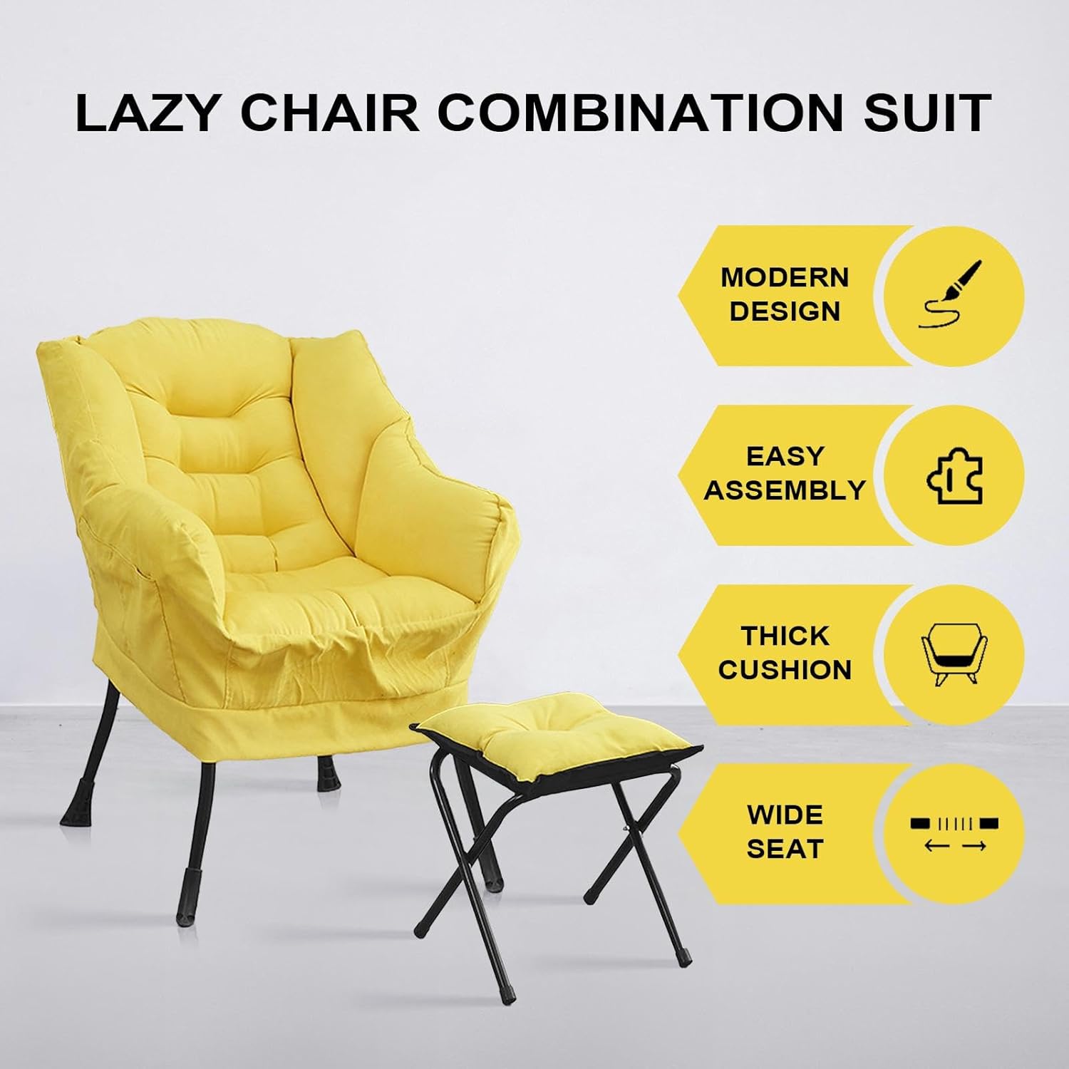 Lazy Chair with Ottoman | Modern Lounge Chair for Bedroom | Large Reclining Accent Chair | Reading Chair with Foldable Footrest | Velvet Sofa Armchair for Dorm, Rooms, Garden and Courty Ard(Yellow)