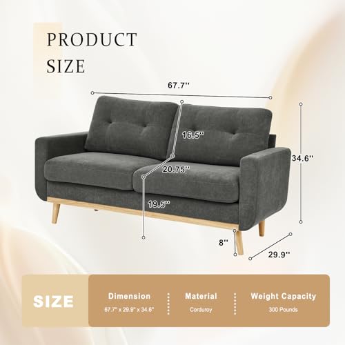 Mid-Century Modern Design for Small Spaces:This 67 compact loveseat blends mid-century modern elegance with tapered solid wood legs and button-tufted detailing. Perfect for small apartments, living rooms, bedrooms, or offices, its clean lines maximize space while adding timeless sophistication to any decor