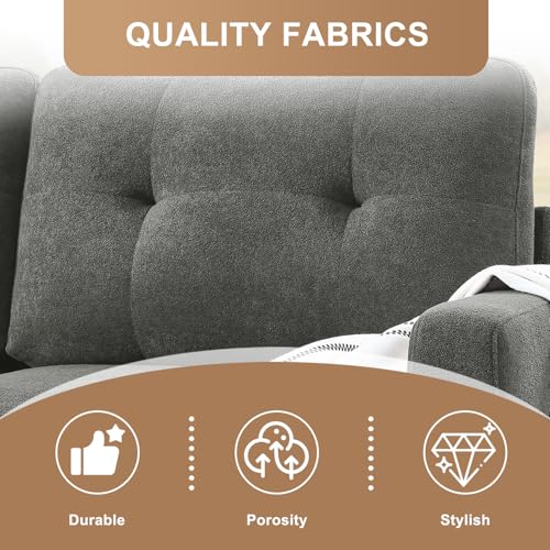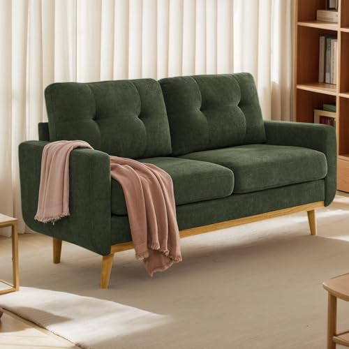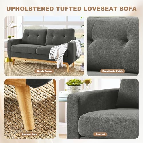Loveseat Sofa, Mid Century Modern Upholstered Love Seat Couches for Living Room, Button Tufted Small Cloud Couch for Bedroom Office Apartment Small Space, Easy Assembly (Green)(Grey)
