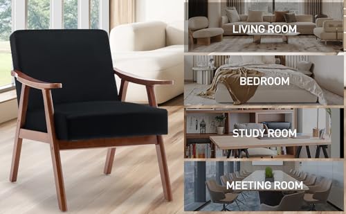 Mid-Century Classic Modern Chair, Solid Wood Frame, Extra Thick Back Design Armchair, Suitable for Living Room, Bedroom, Office, Easy to Assemble (Pink + Velvet)(Black + Velvet)