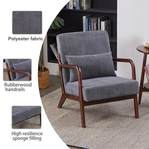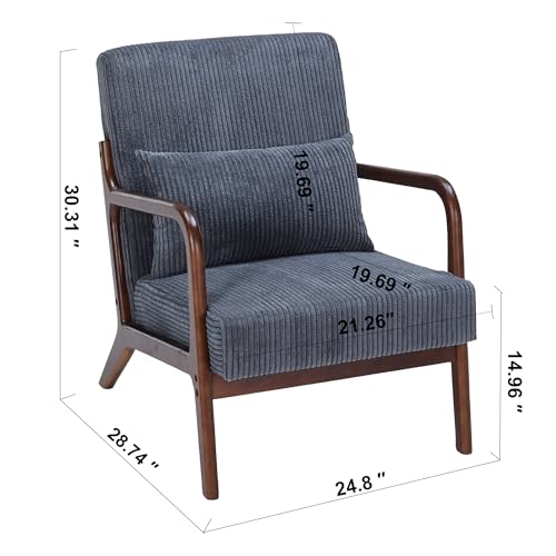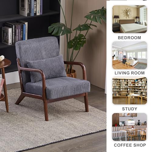 Mid Century Modern Accent Chair for Living Room, Comfy Arm Chairs for Bedroom, Small Cozy Upholstered Reading Chair for Adults, Lounge Armchair with High Back for Balcony (Beige+Natural)(Antique Dark Gray)