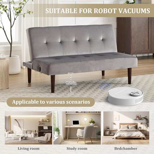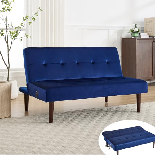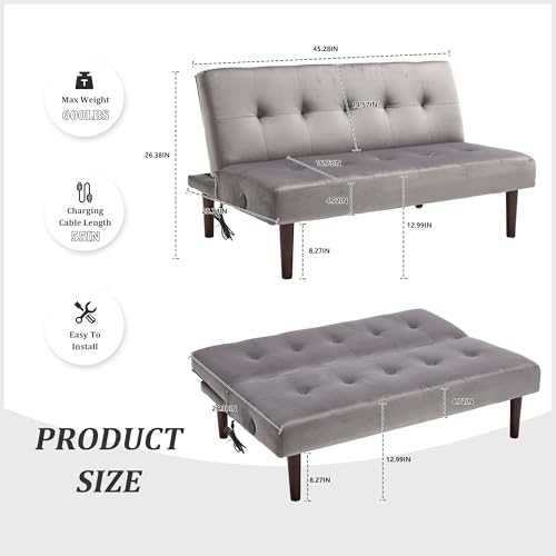 Mini Folding Futon Sofa Bed,45" Small Loveseat Couch with Adjustable Backrest & Charging Port,Modern Sleeper Recliner for Small Living-Spaces,Apartment,Dorm,Office (Blue)(Grey)