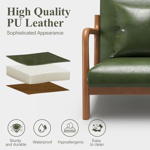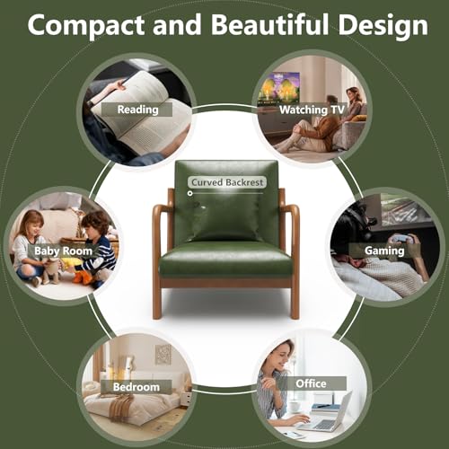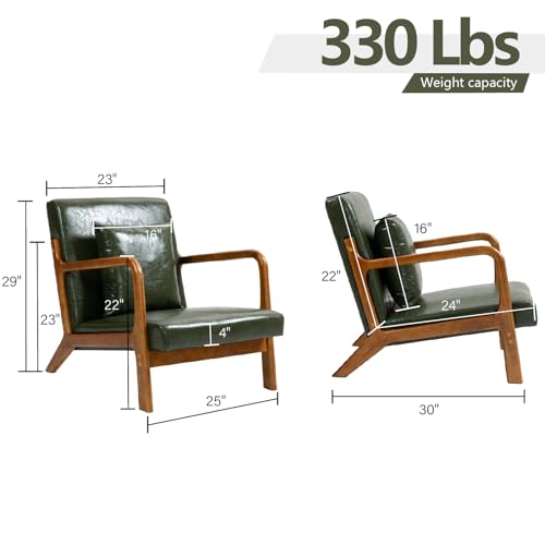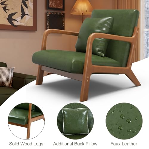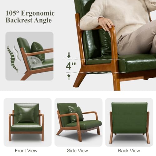 Modern Accent Chair with Lumbar Pillow,Upholstered Armchair with Wood Frame,Mid-Century Lounge Chair for Living Room, Bedroom, Balcony(Green)
