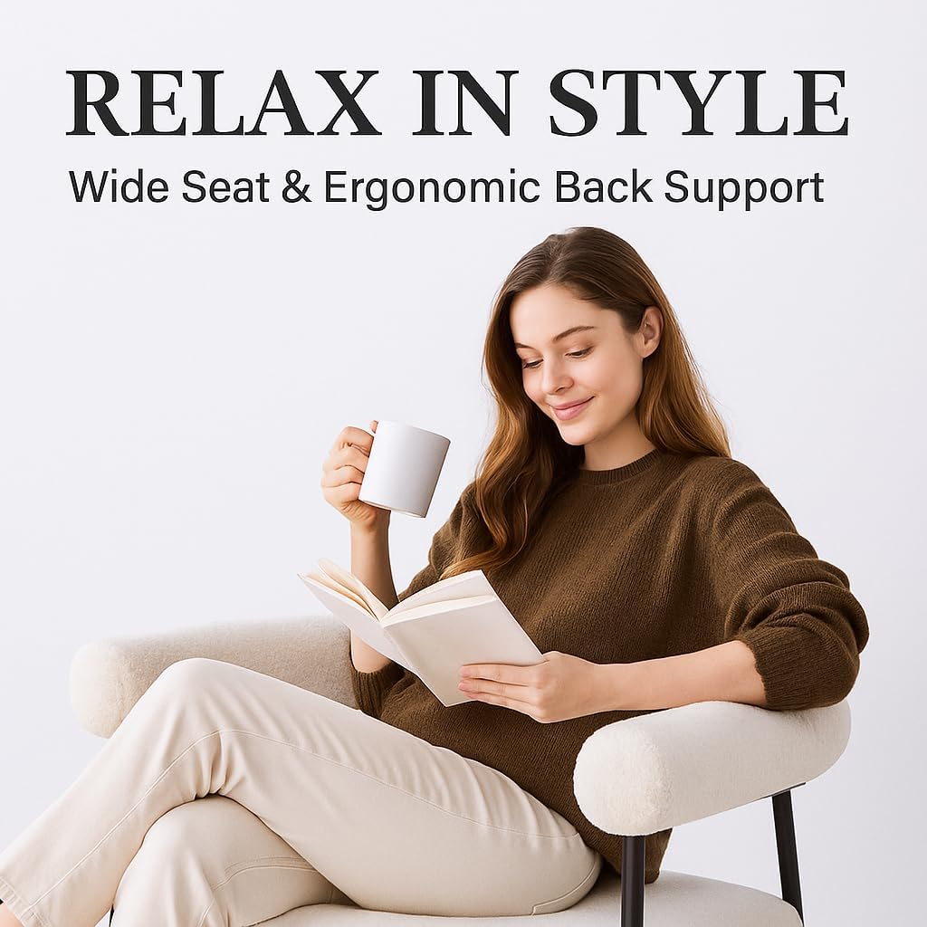 Ergonomic Comfort: With a generously padded seat (26.5” W) and curved backrest, the chair delivers exceptional comfort for extended seating. Perfect for reading, relaxing, or enjoying coffee time, it combines aesthetics with practical comfort.