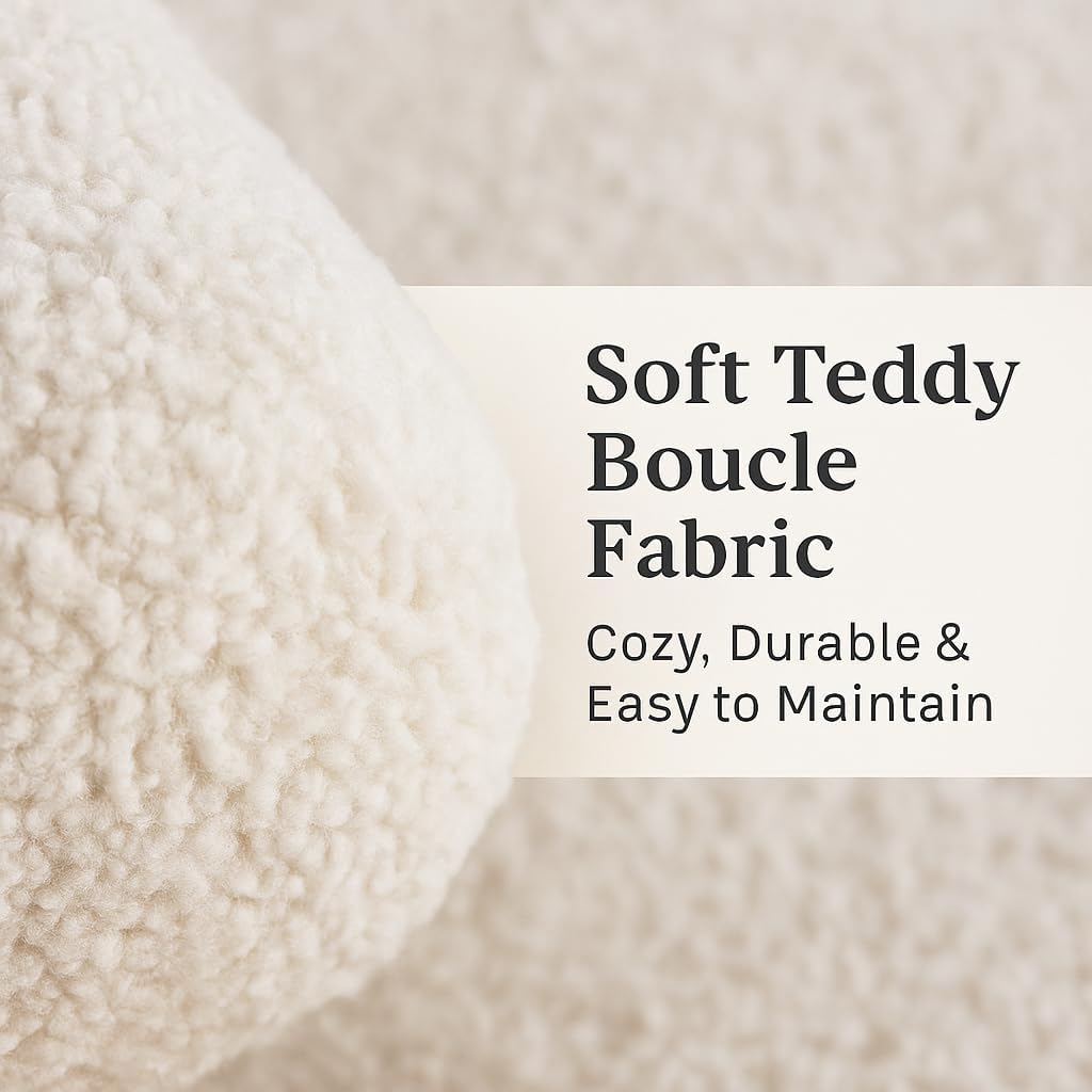 Soft & Durable Boucle Fabric: Upholstered in premium teddy boucle fabric, the chair offers a soft and cozy feel while ensuring long-lasting durability. The textured surface adds a touch of warmth and luxury, creating a stylish yet inviting seating option.