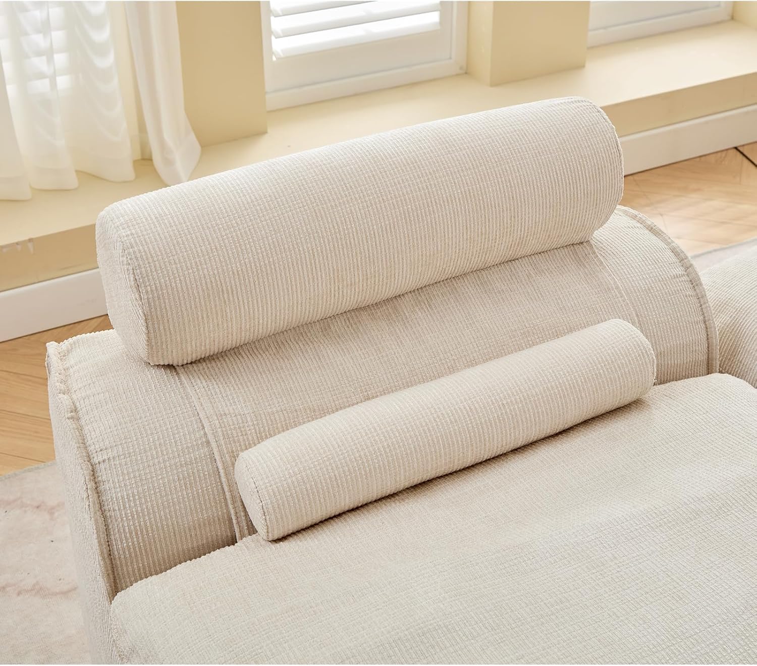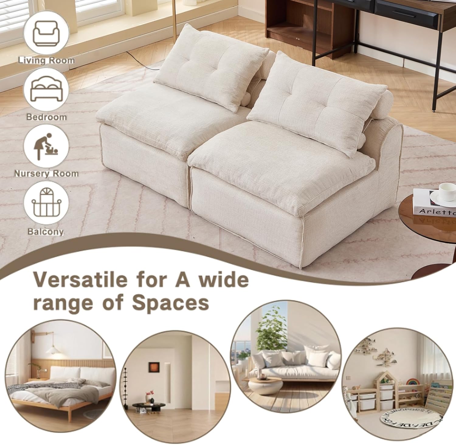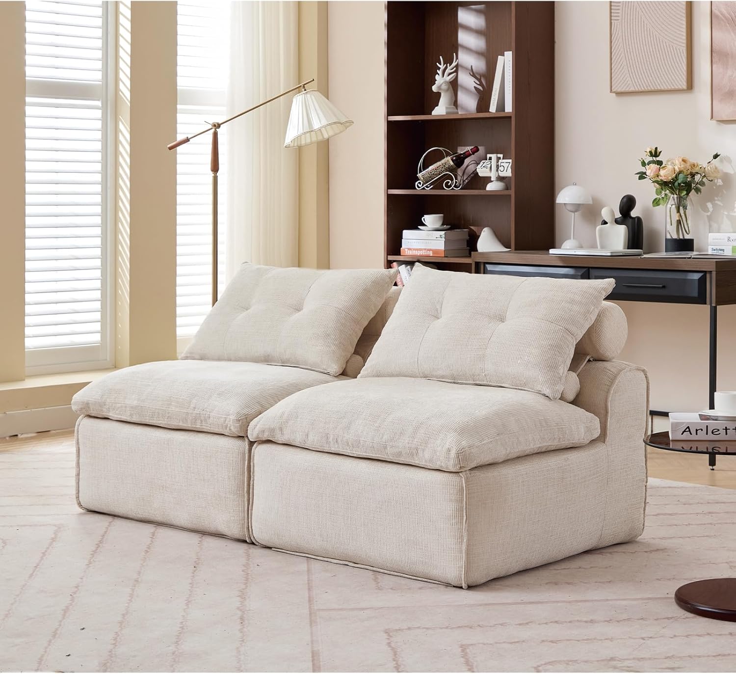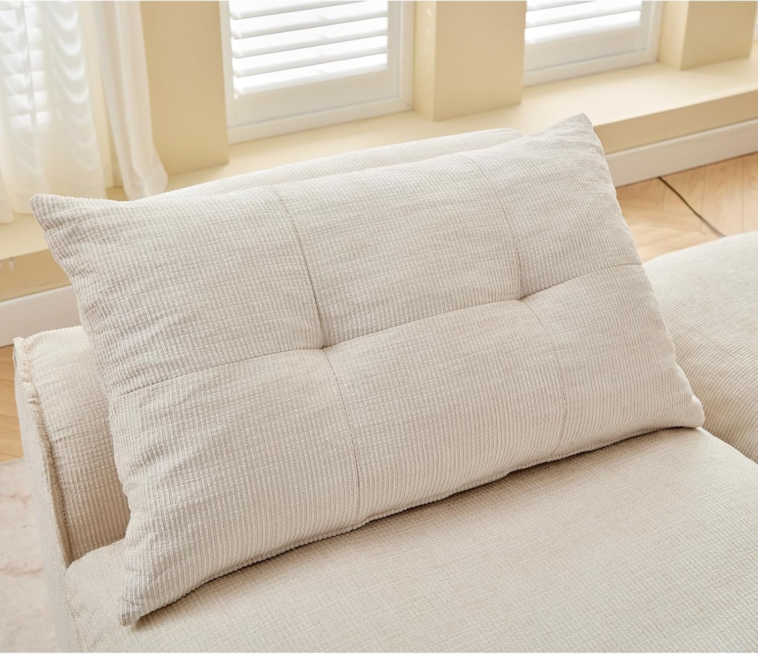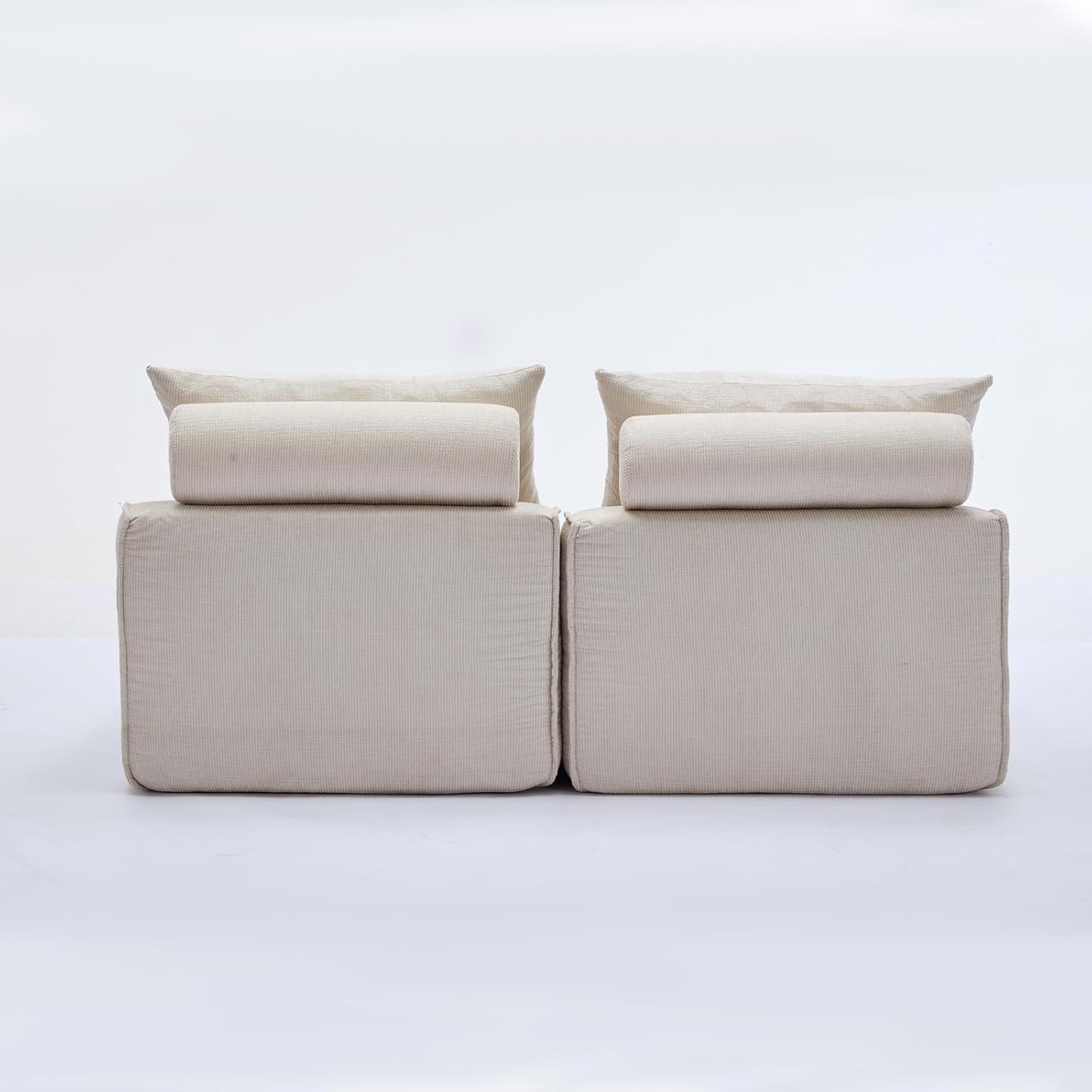 Modular Sectional Couch with Corduroy Fabric, Modern Sleeper Sofa with Lumbar Pillow for Living Room, Reading Nook or Apartment, No Armrests, at Will DIY (2, Beige, Upholstered)