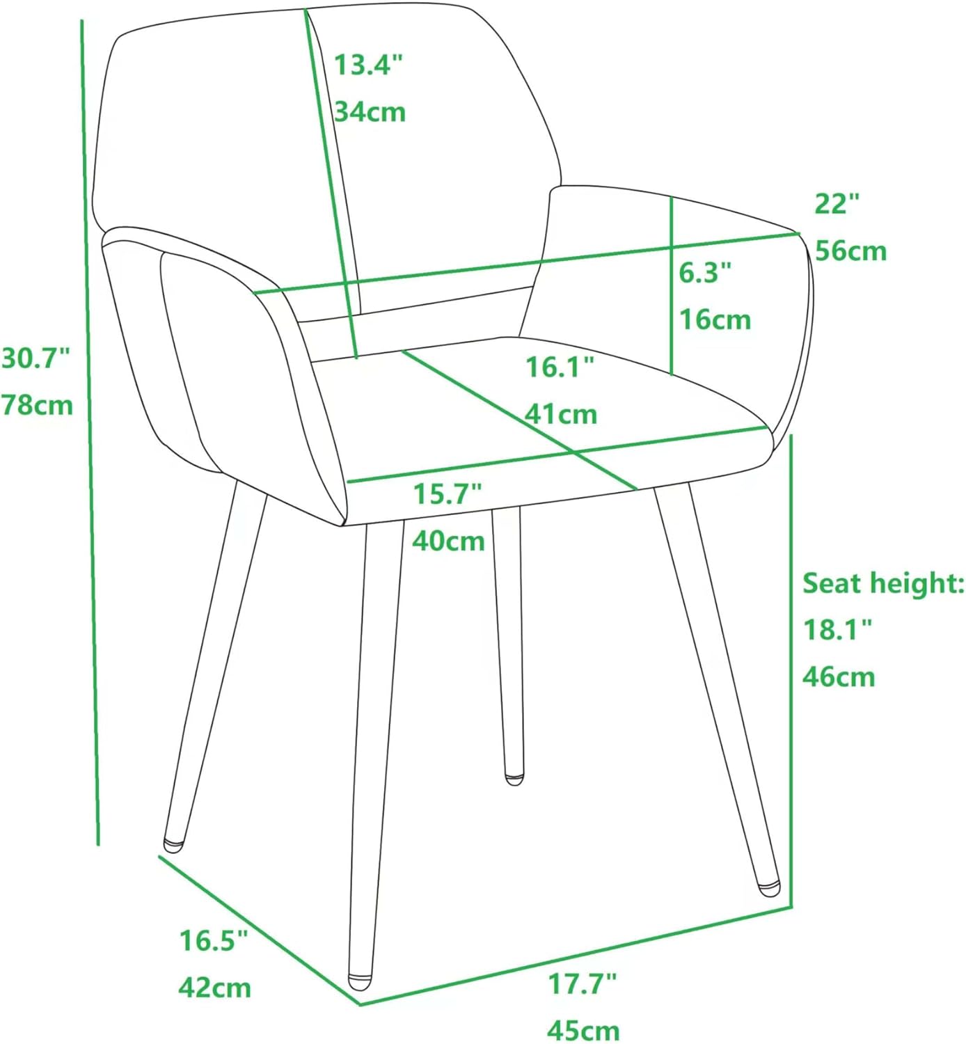 Multi-scene Application: This elegantly designed makeup armchair combines timeless sophistication with modern functionality. Its clean, streamlined silhouette and plush upholstery exude understated luxury, while the beautifully crafted wood-grain metal legs add a touch of organic warmth and contemporary flair, suitable for living room, bedroom, Office ,dining room,et
