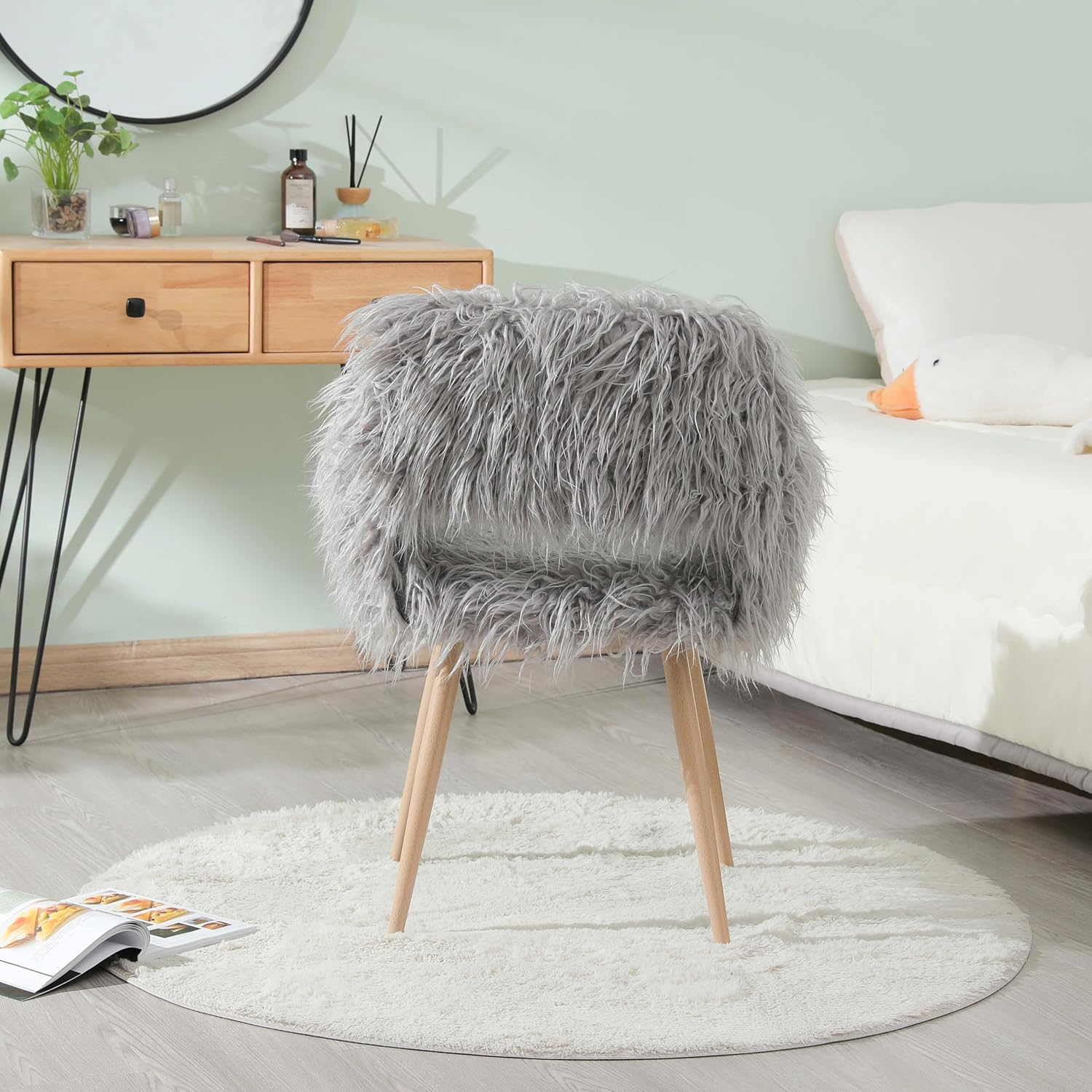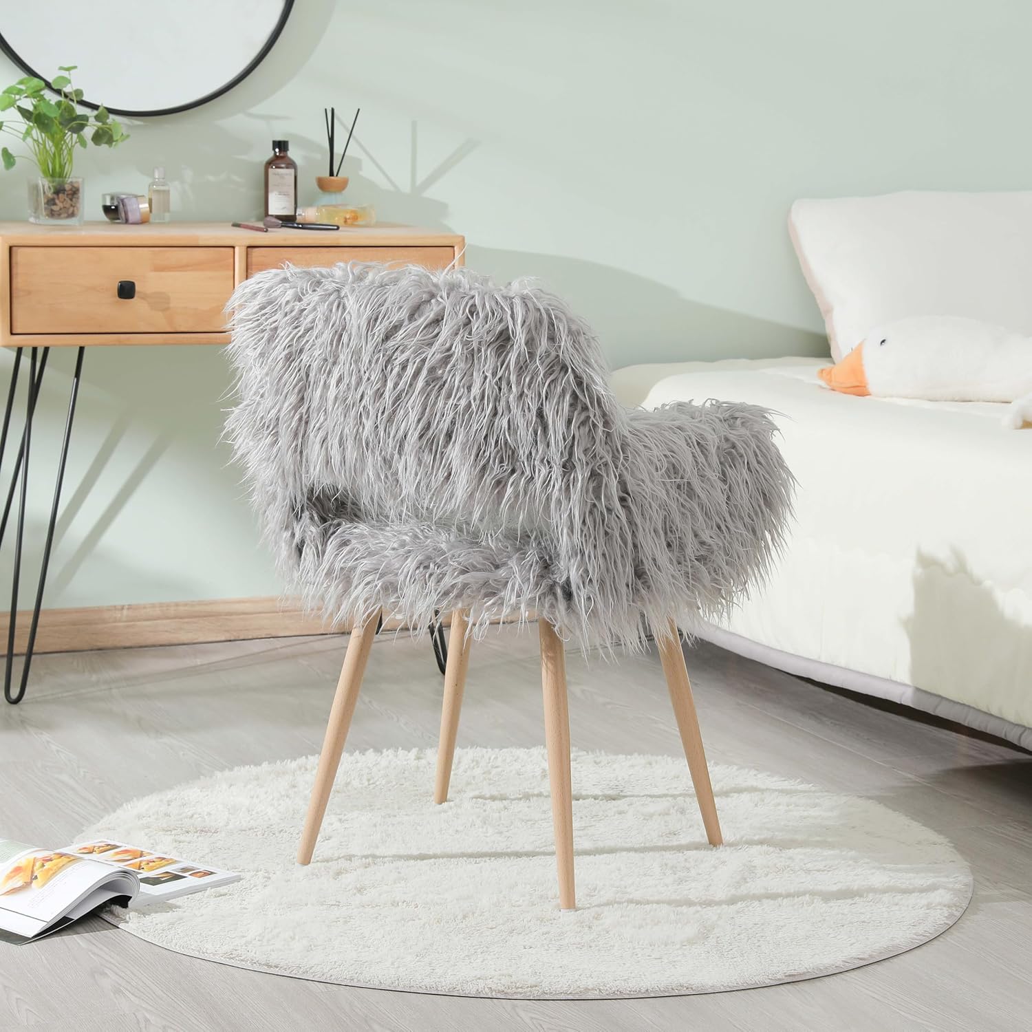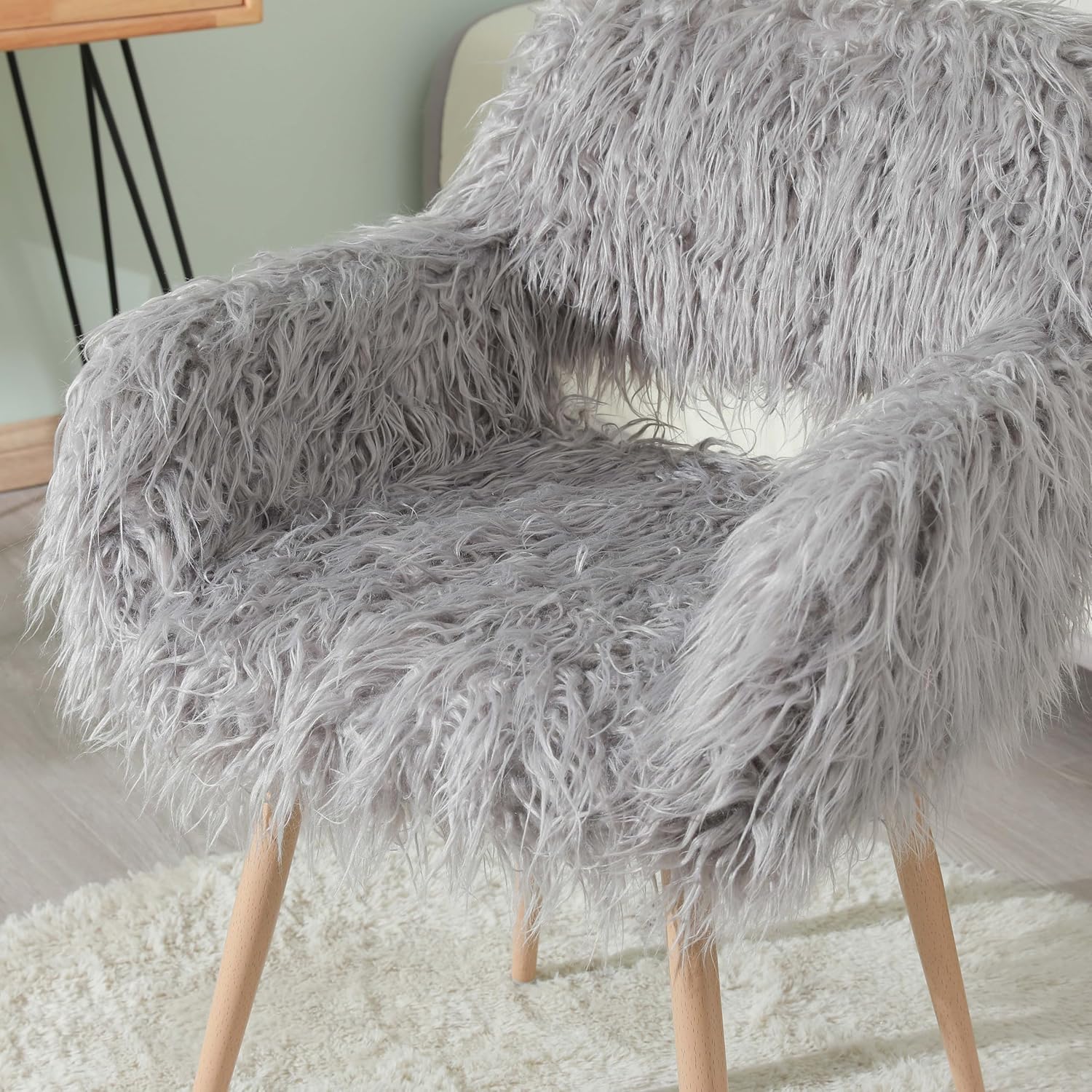 Comfortable Seating:The ergonomic faux fur chair features light slope back and wide padded seat, which filled with resillence sponge,never deformed after long time serving. elegant comfort offers you good back support and reduces pains resulted from long time seating