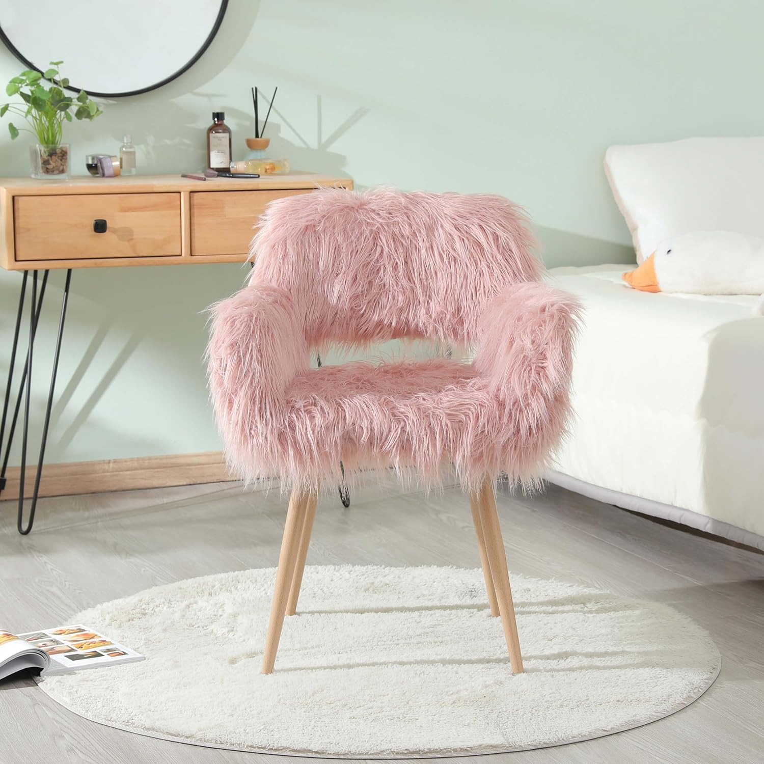 Comment on "Pink Faux Fur Upholstered Accent Chair, Modern Makeup Vanity Armchair, Side Dining Chair with Metal Leg for Girls Women, Office Seat Without Wheels for Living Room, Bedroom (Pink)(Grey)"