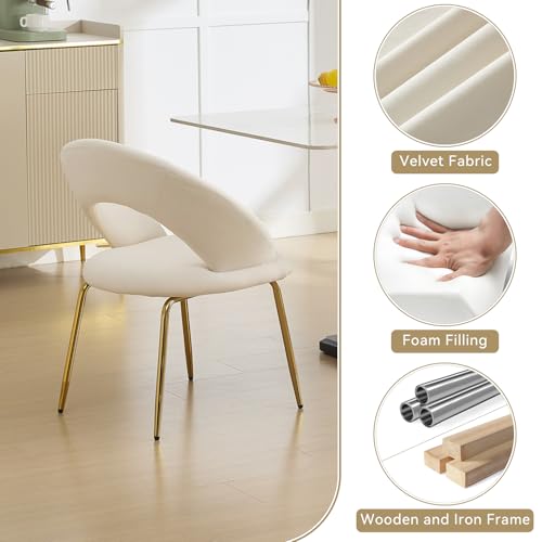 Luxury Velvet Upholstery: Elevate your space with plush velvet fabric that feels soft to the touch, paired with shiny golden metal legs; The sturdy plywood and metal frame supports up to 250 lbs, blending elegance with durability for a vanity chair that stands out in any room