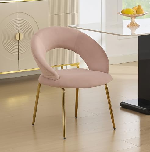 Pink Vanity Chair, Modern Velvet Living Room Accent Chair with Curved Backrest, Upholstered Cute Armchair with Golden Metal Legs for Dressing Room Bedroom Dining Room Office (Pink+Velvet)(White+velvet)